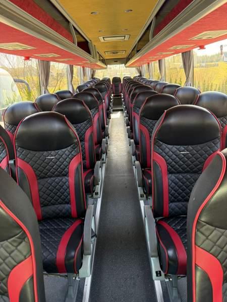 : WC, kabina sypialna, fotele odchylane, oświetlenie indywidualne, nawiewy dyszowe, tempomat, retarder, mikrofon, klimatyzacja, regulacja wysokości nadwozia, podwójne szyby boczne, elektryczne lusterka