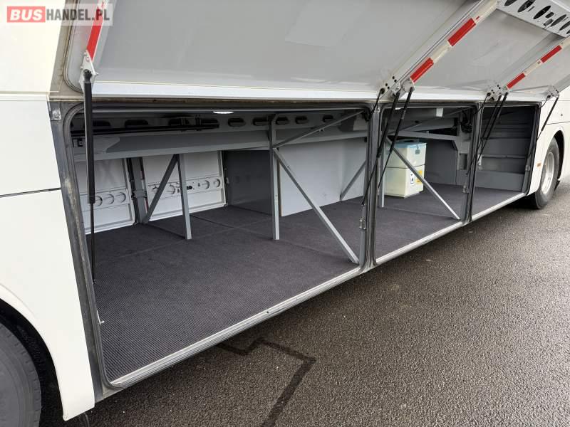 : klimatyzacja, video, WC, lodówka, caffebar, kabina sypialna, oświetlenie indywidualne, nawiewy dyszowe, fotele odchylane, podnóżki, stoliczki, siateczki, ABS, ASR, tempomat, retarder, telefon, nawigacja, CD, mikrofon, fotele odchylane i rozsuwane, wyświetlacz matrix, rampa dla inwalidów, sejf, regulacja wysokości nadwozia, centralny zamek, podwójne szyby boczne, wspomaganie kierownicy, aluminiowe felgi, elektryczne lusterka, ogrzewanie stacjonarne, DVD, hak holowniczy, ESP