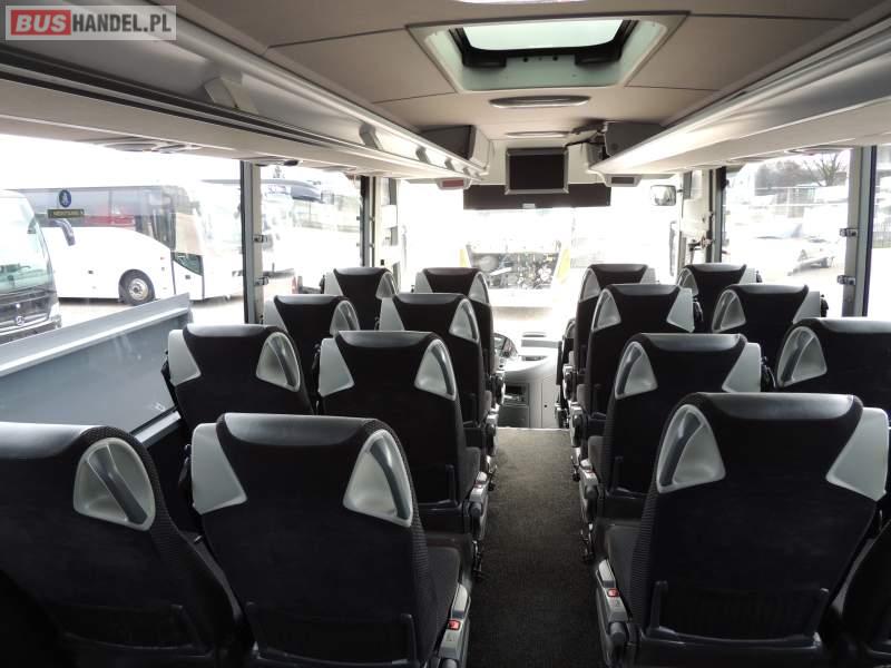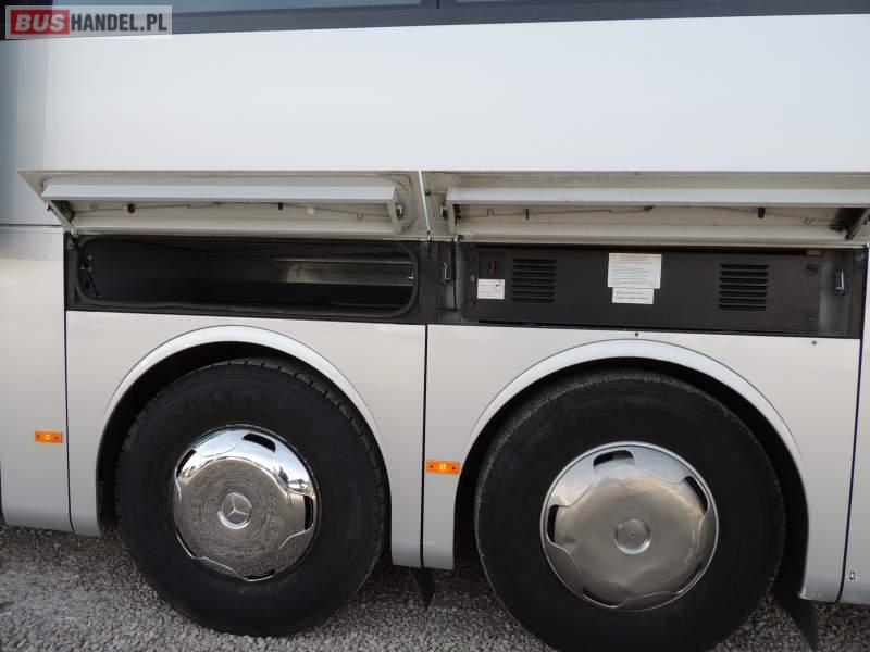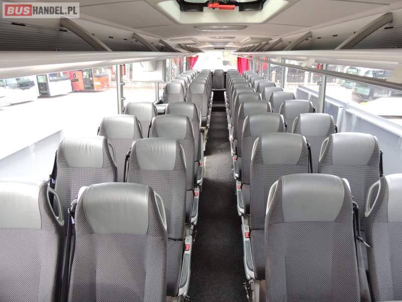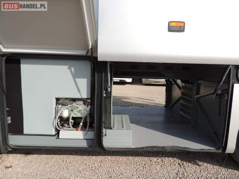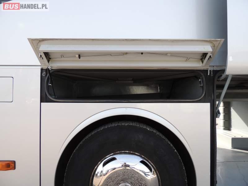 : video, WC, lodówka, oświetlenie indywidualne, nawiewy dyszowe, ABS, ASR, tempomat, retarder, CD, klimatyzacja, radio, regulacja wysokości nadwozia, centralny zamek, podwójne szyby boczne, wspomaganie kierownicy, elektryczne lusterka, fotele odchylane i rozsuwane, DVD, ogrzewanie stacjonarne, ESP