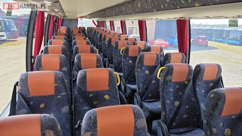: video, lodówka, caffebar, oświetlenie indywidualne, nawiewy dyszowe, siateczki, ABS, ASR, tempomat, retarder, CD, podnóżki, mikrofon, klimatyzacja, radio, wyświetlacz matrix, rampa dla inwalidów, regulacja wysokości nadwozia, centralny zamek, podwójne szyby boczne, wspomaganie kierownicy, elektryczne lusterka, fotele odchylane i rozsuwane, DVD, ogrzewanie stacjonarne, ESP