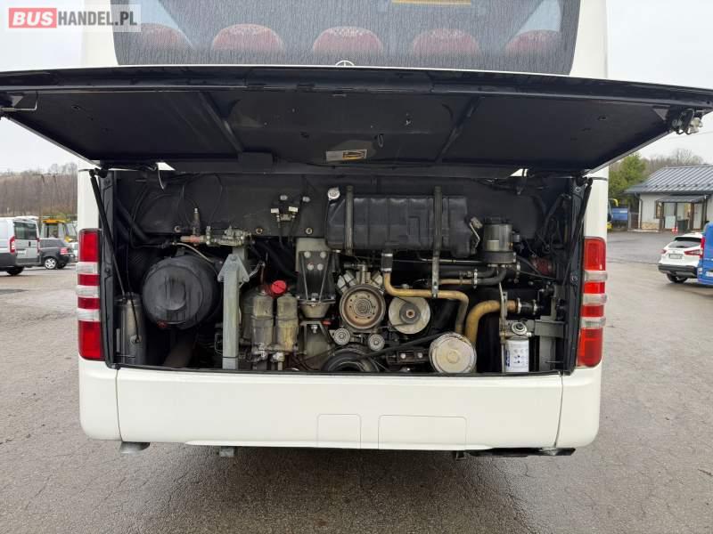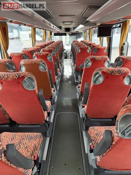 : lodówka, fotele odchylane, oświetlenie indywidualne, nawiewy dyszowe, siateczki, ABS, ASR, tempomat, retarder, podnóżki, stoliczki, mikrofon, klimatyzacja, radio, regulacja wysokości nadwozia, centralny zamek, podwójne szyby boczne, wspomaganie kierownicy, elektryczne lusterka, DVD, ogrzewanie stacjonarne