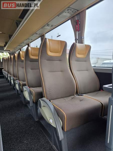 : lodówka, fotele odchylane, oświetlenie indywidualne, nawiewy dyszowe, siateczki, ABS, ASR, tempomat, retarder, podnóżki, stoliczki, mikrofon, klimatyzacja, radio, regulacja wysokości nadwozia, centralny zamek, podwójne szyby boczne, wspomaganie kierownicy, elektryczne lusterka, fotele odchylane i rozsuwane, ogrzewanie stacjonarne