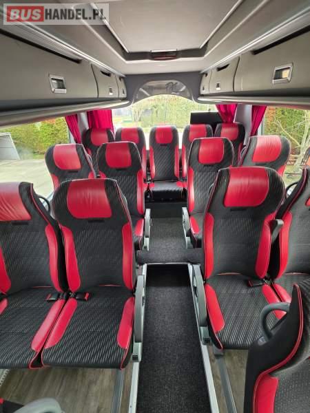: WC, lodówka, caffebar, kabina sypialna, fotele odchylane, oświetlenie indywidualne, nawiewy dyszowe, siateczki, ABS, ASR, tempomat, retarder, podnóżki, stoliczki, mikrofon, klimatyzacja, radio, sejf, regulacja wysokości nadwozia, centralny zamek, podwójne szyby boczne, wspomaganie kierownicy, elektryczne lusterka, fotele odchylane i rozsuwane, DVD, ogrzewanie stacjonarne, hak holowniczy, ESP
