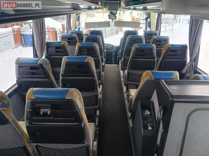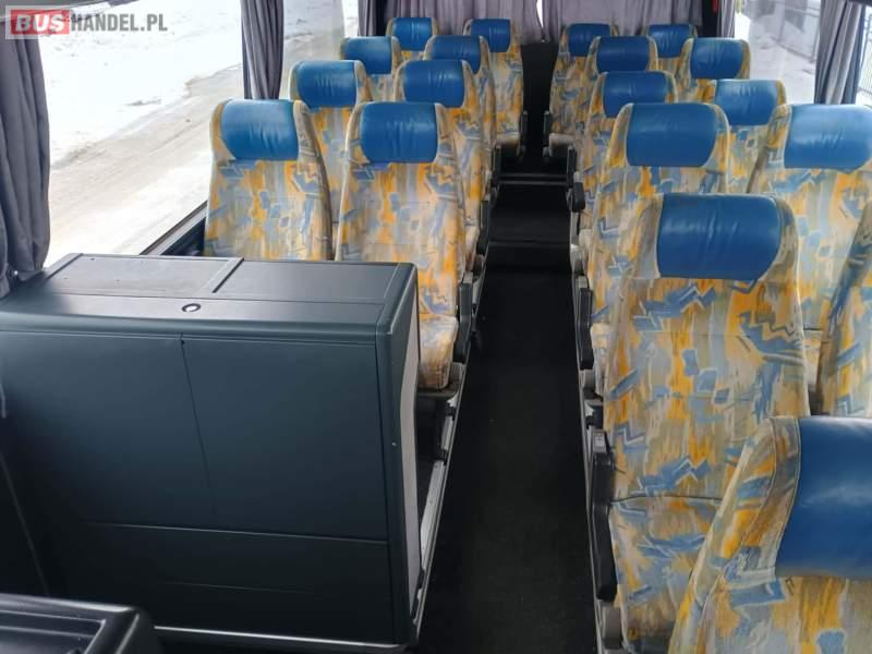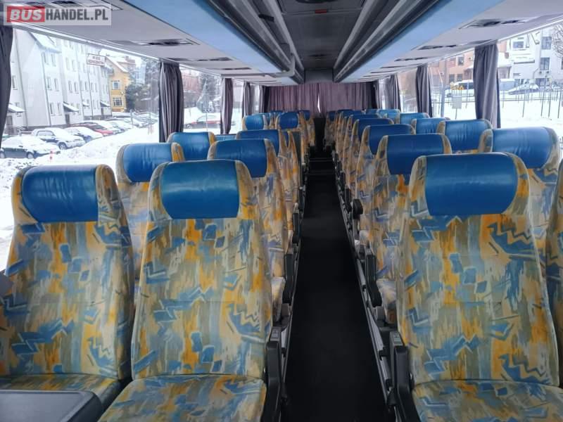 : lodówka, caffebar, fotele odchylane, oświetlenie indywidualne, nawiewy dyszowe, siateczki, ABS, ASR, tempomat, retarder, podnóżki, stoliczki, mikrofon, klimatyzacja, radio, regulacja wysokości nadwozia, centralny zamek, podwójne szyby boczne, wspomaganie kierownicy, elektryczne lusterka, fotele odchylane i rozsuwane, ogrzewanie stacjonarne