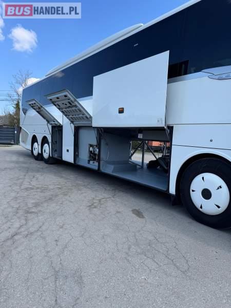 : WC, lodówka, kabina sypialna, fotele odchylane, oświetlenie indywidualne, nawiewy dyszowe, siateczki, ABS, ASR, tempomat, retarder, stoliczki, mikrofon, klimatyzacja, radio, sejf, regulacja wysokości nadwozia, centralny zamek, podwójne szyby boczne, wspomaganie kierownicy, elektryczne lusterka, fotele odchylane i rozsuwane, DVD, ogrzewanie stacjonarne, ESP
