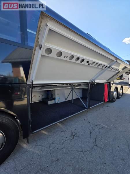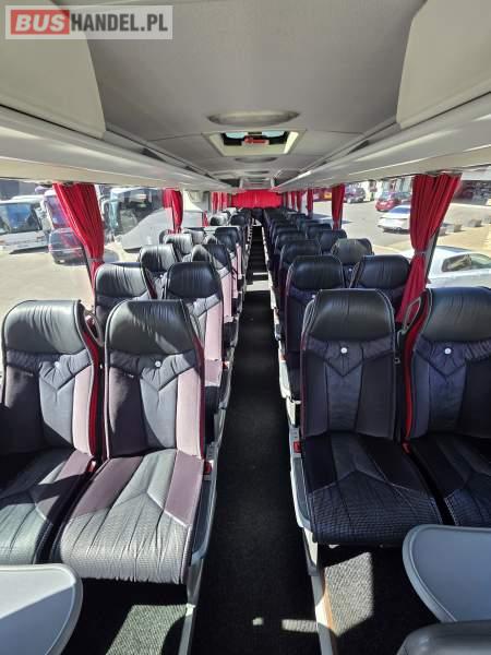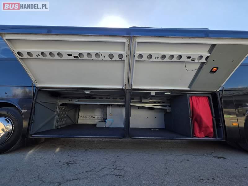 : WC, lodówka, caffebar, kabina sypialna, fotele odchylane, oświetlenie indywidualne, nawiewy dyszowe, siateczki, ABS, ASR, tempomat, retarder, podnóżki, stoliczki, mikrofon, klimatyzacja, radio, sejf, regulacja wysokości nadwozia, centralny zamek, podwójne szyby boczne, wspomaganie kierownicy, elektryczne lusterka, fotele odchylane i rozsuwane, DVD, ogrzewanie stacjonarne, ESP