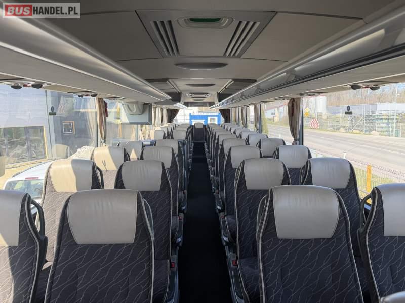 : klimatyzacja, video, WC, lodówka, caffebar, oświetlenie indywidualne, nawiewy dyszowe, fotele odchylane, fotele nieodchylane, podnóżki, stoliczki, siateczki, ABS, ASR, tempomat, retarder, CD, mikrofon, radio, fotele odchylane i rozsuwane, sejf, regulacja wysokości nadwozia, centralny zamek, podwójne szyby boczne, wspomaganie kierownicy, elektryczne lusterka, ogrzewanie stacjonarne, DVD, hak holowniczy, ESP