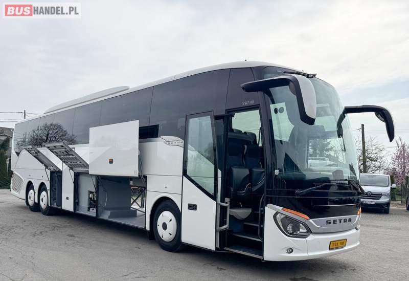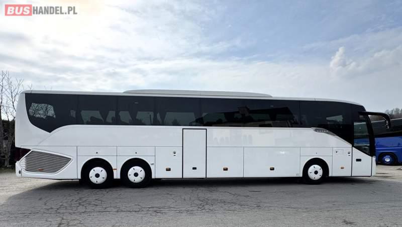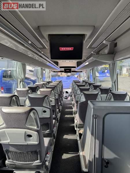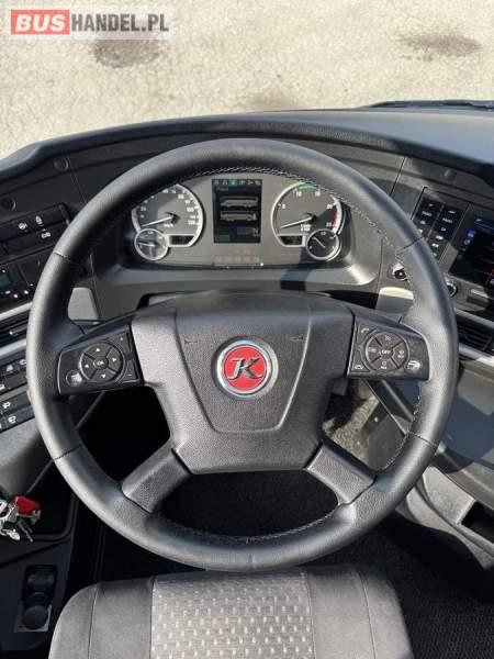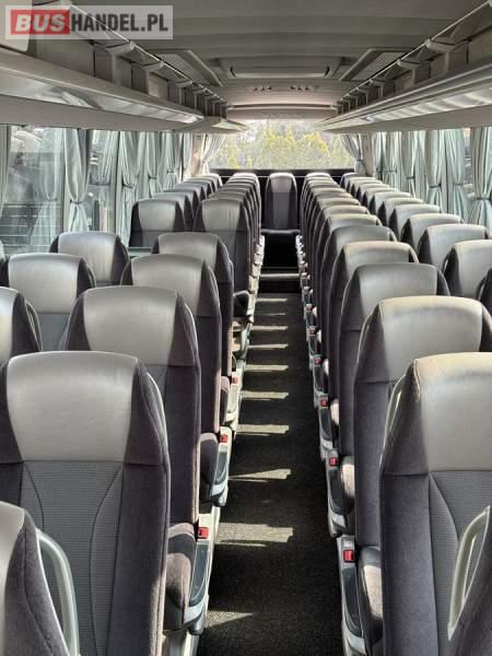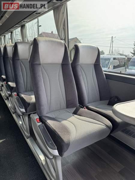 : WC, lodówka, kabina sypialna, fotele odchylane, oświetlenie indywidualne, nawiewy dyszowe, siateczki, tempomat, retarder, podnóżki, stoliczki, mikrofon, klimatyzacja, radio, sejf, regulacja wysokości nadwozia, centralny zamek, podwójne szyby boczne, wspomaganie kierownicy, elektryczne lusterka, fotele odchylane i rozsuwane, DVD, ogrzewanie stacjonarne, ESP