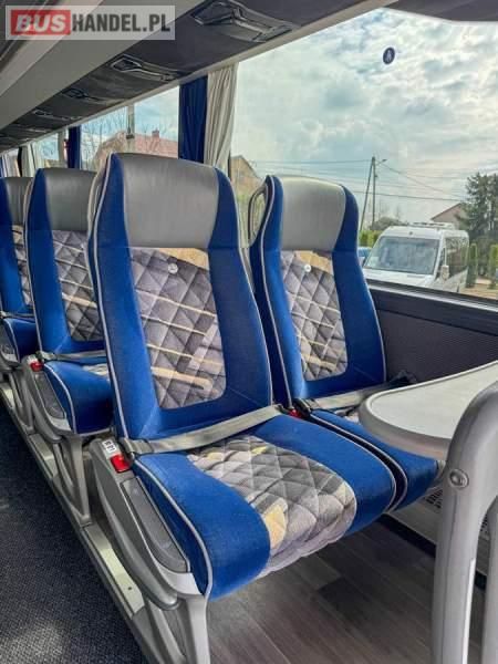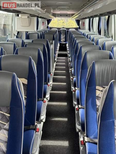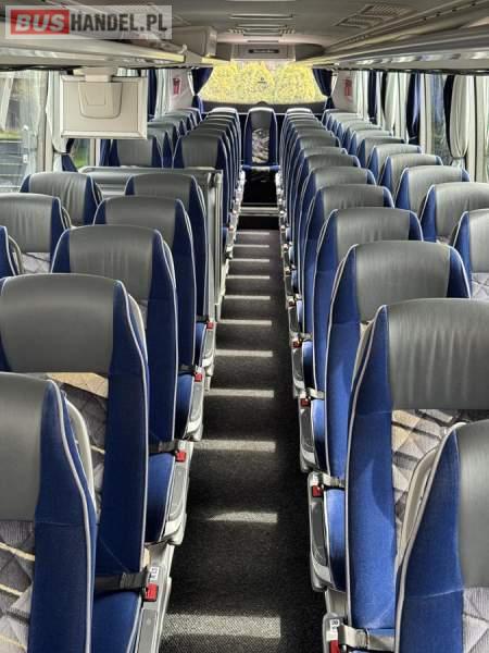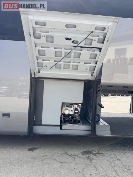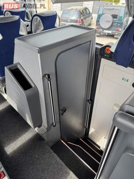 : WC, lodówka, caffebar, kabina sypialna, fotele odchylane, oświetlenie indywidualne, nawiewy dyszowe, siateczki, ABS, ASR, tempomat, retarder, podnóżki, stoliczki, mikrofon, klimatyzacja, radio, sejf, regulacja wysokości nadwozia, centralny zamek, podwójne szyby boczne, elektryczne lusterka, aluminiowe felgi, fotele odchylane i rozsuwane, DVD, ogrzewanie stacjonarne, ESP