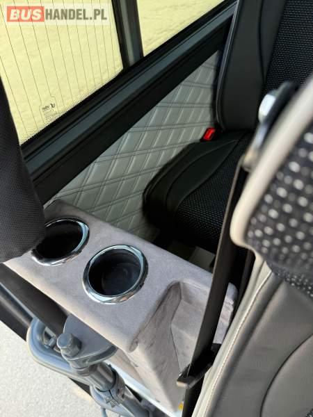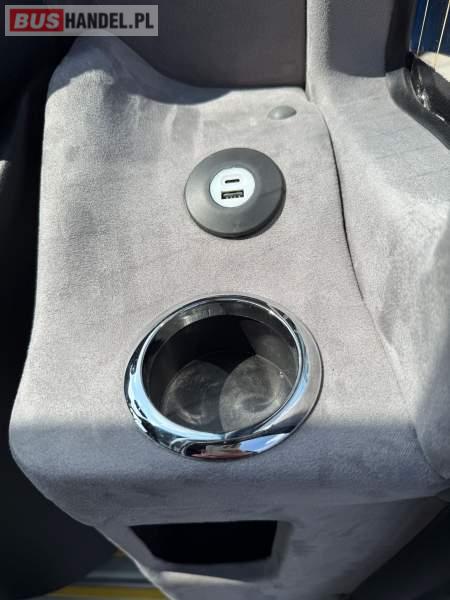 : lodówka, fotele odchylane, oświetlenie indywidualne, nawiewy dyszowe, siateczki, ABS, ASR, tempomat, retarder, podnóżki, stoliczki, mikrofon, klimatyzacja, radio, regulacja wysokości nadwozia, centralny zamek, podwójne szyby boczne, wspomaganie kierownicy, elektryczne lusterka, fotele odchylane i rozsuwane, ogrzewanie stacjonarne, ESP