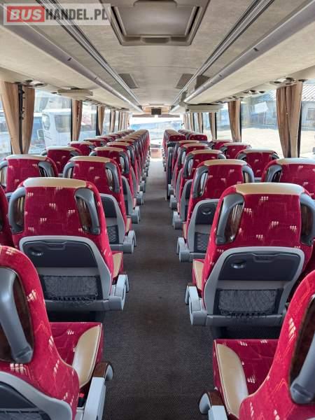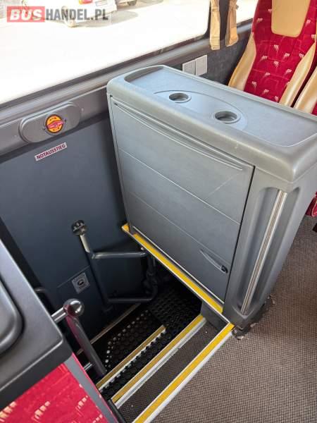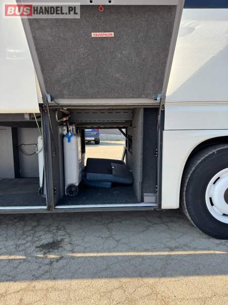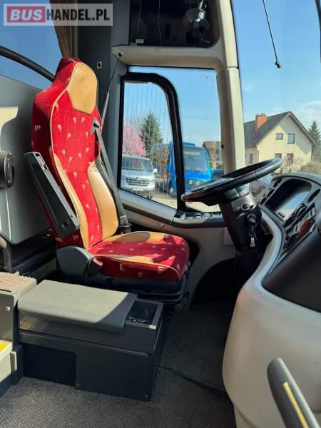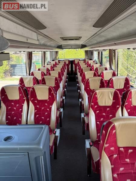 : WC, lodówka, caffebar, kabina sypialna, fotele odchylane, oświetlenie indywidualne, nawiewy dyszowe, siateczki, ABS, ASR, tempomat, retarder, podnóżki, stoliczki, mikrofon, klimatyzacja, radio, sejf, regulacja wysokości nadwozia, centralny zamek, podwójne szyby boczne, wspomaganie kierownicy, elektryczne lusterka, fotele odchylane i rozsuwane, DVD, ogrzewanie stacjonarne, ESP