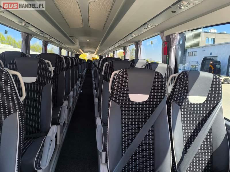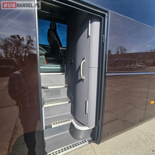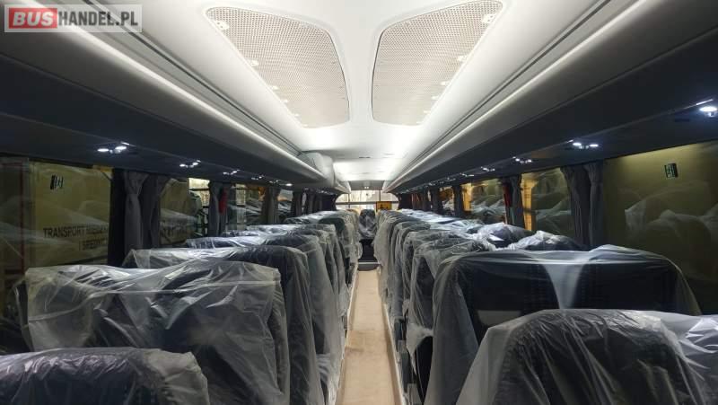 : video, WC, lodówka, kabina sypialna, oświetlenie indywidualne, nawiewy dyszowe, ABS, ASR, tempomat, retarder, nawigacja, CD, podnóżki, mikrofon, klimatyzacja, radio, sejf, regulacja wysokości nadwozia, centralny zamek, podwójne szyby boczne, wspomaganie kierownicy, elektryczne lusterka, aluminiowe felgi, fotele odchylane i rozsuwane, DVD, ogrzewanie stacjonarne, ESP