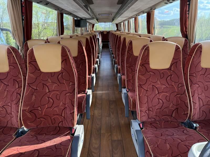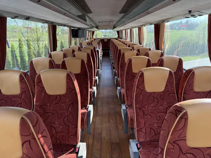 : WC, lodówka, kabina sypialna, fotele odchylane, nawiewy dyszowe, tempomat, CD, podnóżki, mikrofon, klimatyzacja, radio, regulacja wysokości nadwozia, podwójne szyby boczne, wspomaganie kierownicy, elektryczne lusterka, aluminiowe felgi, fotele odchylane i rozsuwane, DVD, ESP