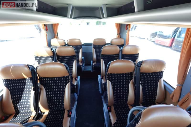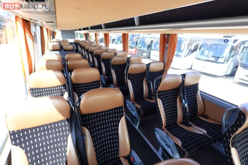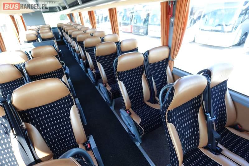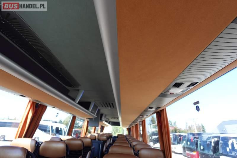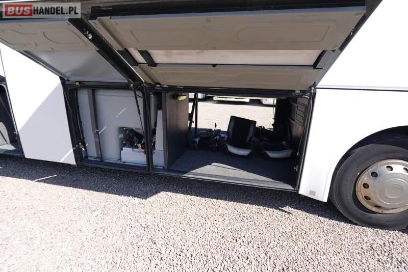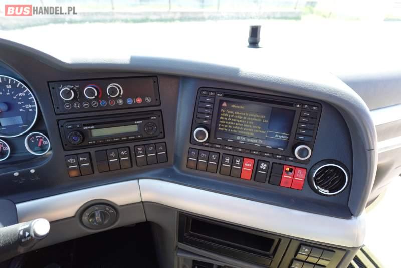 : video, WC, lodówka, caffebar, kabina sypialna, oświetlenie indywidualne, nawiewy dyszowe, siateczki, ABS, ASR, tempomat, retarder, telefon, CD, podnóżki, stoliczki, mikrofon, klimatyzacja, radio, regulacja wysokości nadwozia, centralny zamek, podwójne szyby boczne, wspomaganie kierownicy, elektryczne lusterka, fotele odchylane i rozsuwane, DVD, ogrzewanie stacjonarne, ESP