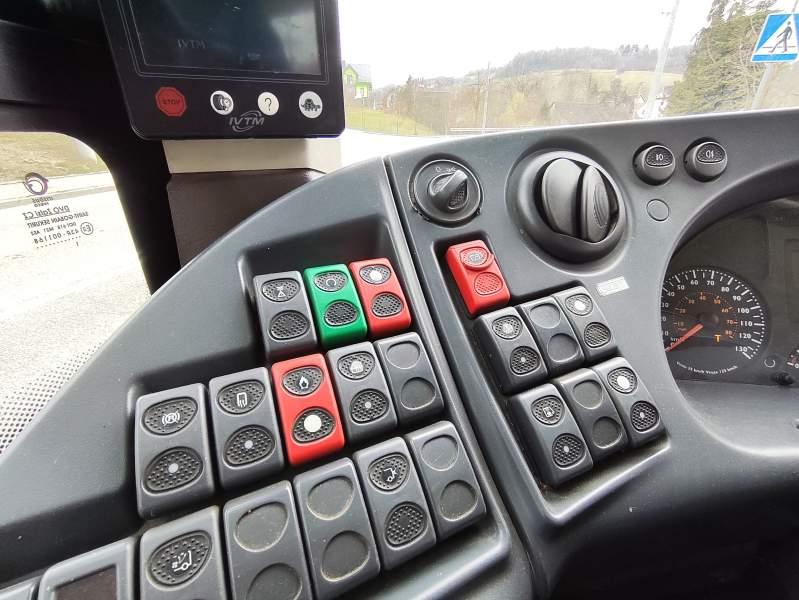 : nawiewy dyszowe, ABS, ASR, tempomat, retarder, fotele nieodchylane, radio, rampa dla inwalidów, regulacja wysokości nadwozia, centralny zamek, wspomaganie kierownicy, elektryczne lusterka, ogrzewanie stacjonarne, ESP