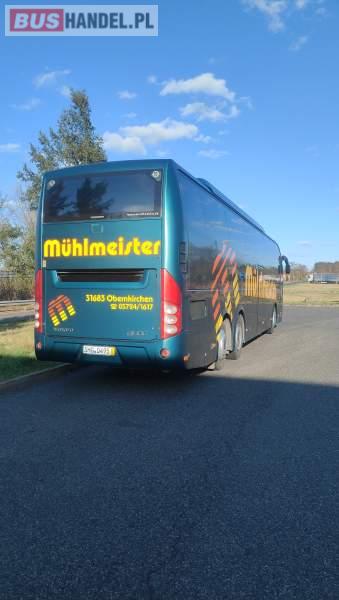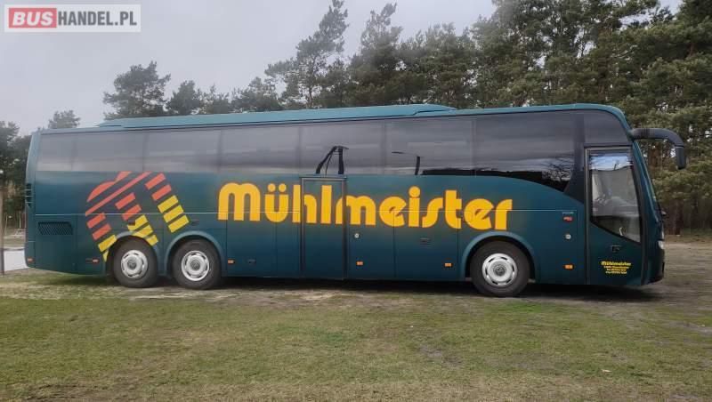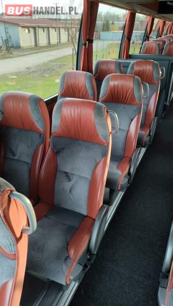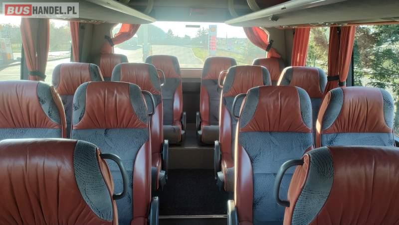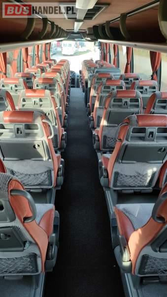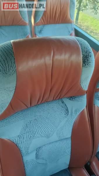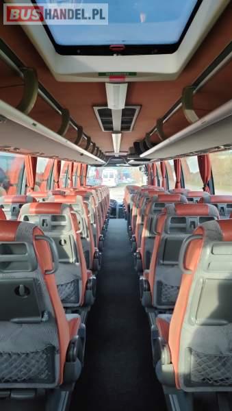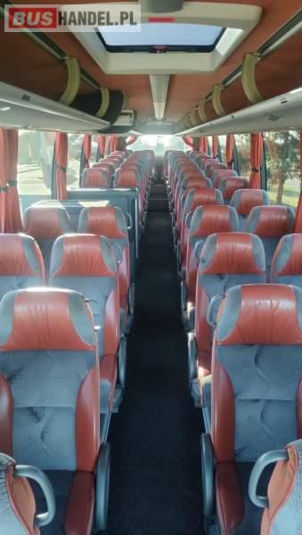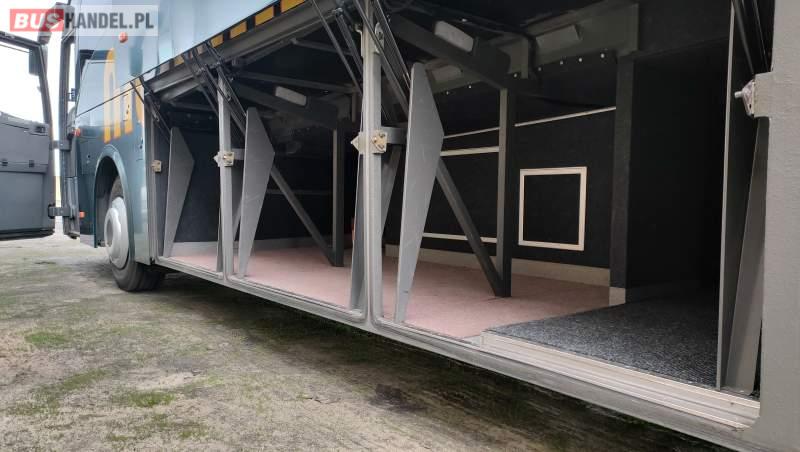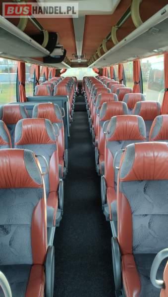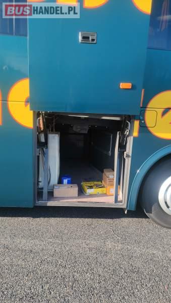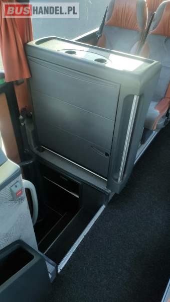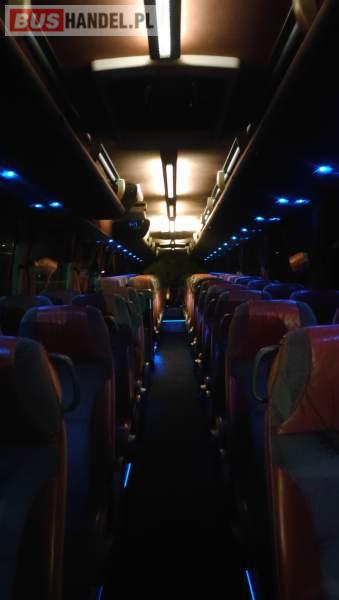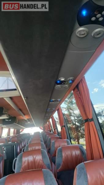 : klimatyzacja, video, WC, lodówka, caffebar, kabina sypialna, oświetlenie indywidualne, nawiewy dyszowe, fotele odchylane, podnóżki, stoliczki, siateczki, ABS, ASR, tempomat, retarder, nawigacja, CD, mikrofon, radio, fotele odchylane i rozsuwane, sejf, regulacja wysokości nadwozia, centralny zamek, podwójne szyby boczne, wspomaganie kierownicy, elektryczne lusterka, ogrzewanie stacjonarne, DVD, hak holowniczy, ESP