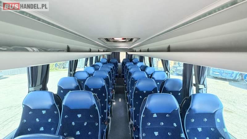 : fotele odchylane, oświetlenie indywidualne, nawiewy dyszowe, siateczki, ABS, ASR, tempomat, retarder, podnóżki, stoliczki, mikrofon, klimatyzacja, radio, regulacja wysokości nadwozia, centralny zamek, podwójne szyby boczne, wspomaganie kierownicy, elektryczne lusterka, DVD, ogrzewanie stacjonarne