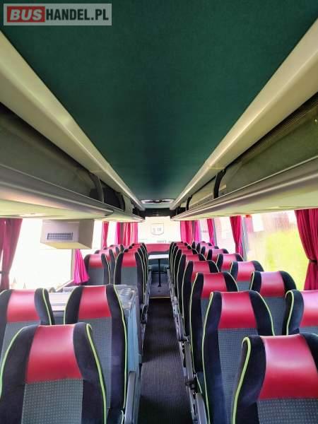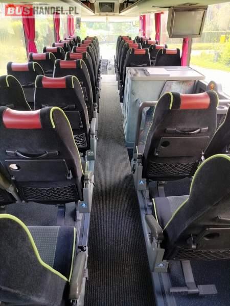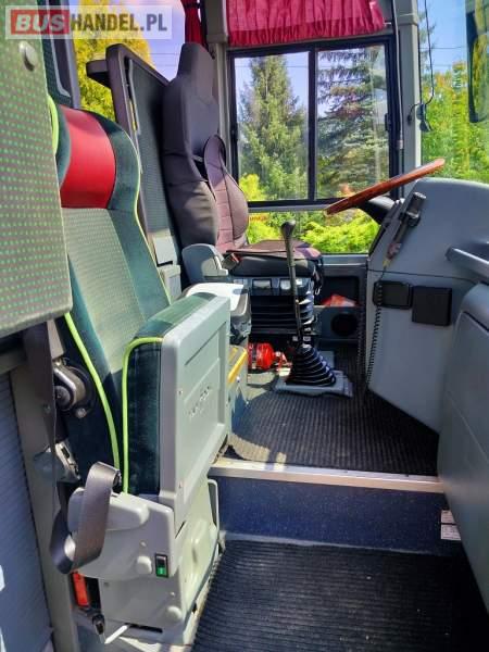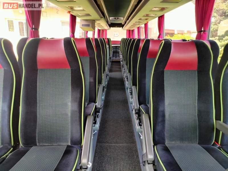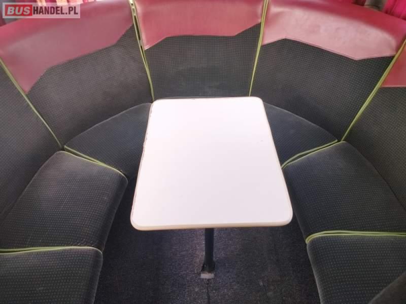 : WC, lodówka, kabina sypialna, fotele odchylane, oświetlenie indywidualne, siateczki, ABS, tempomat, podnóżki, stoliczki, mikrofon, klimatyzacja, radio, regulacja wysokości nadwozia, DVD, ogrzewanie stacjonarne