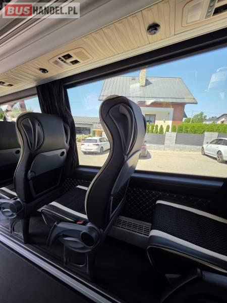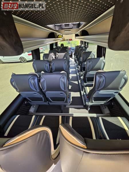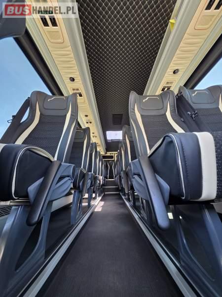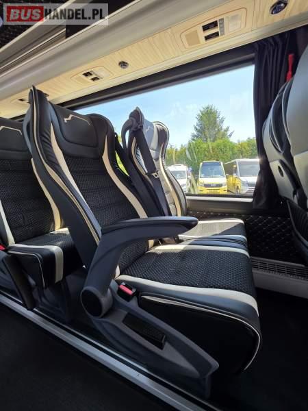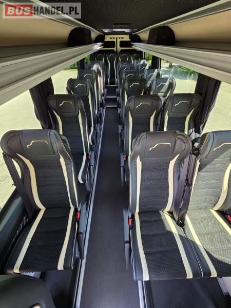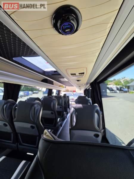 : oświetlenie indywidualne, nawiewy dyszowe, siateczki, ABS, ASR, tempomat, podnóżki, stoliczki, mikrofon, regulacja wysokości nadwozia, centralny zamek, podwójne szyby boczne, wspomaganie kierownicy, elektryczne lusterka, fotele odchylane i rozsuwane, ogrzewanie stacjonarne