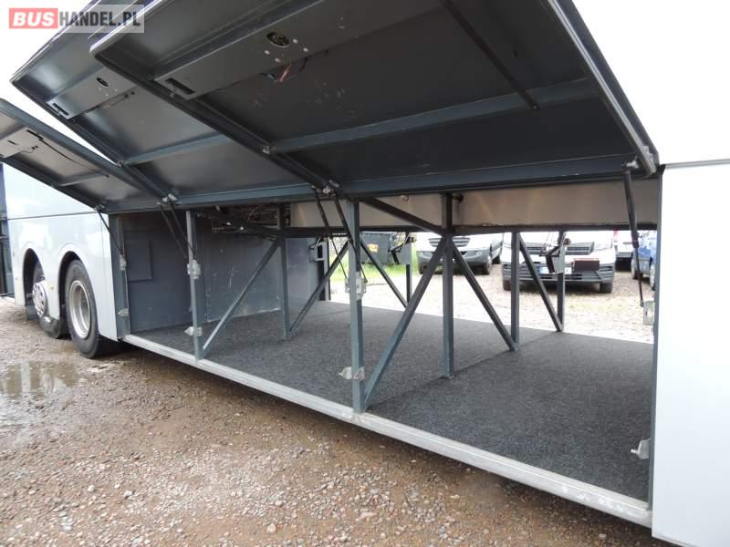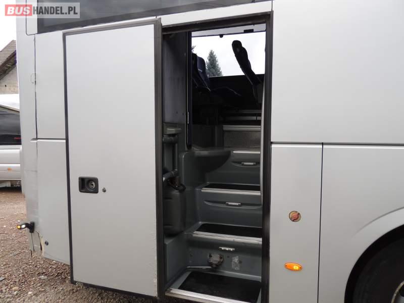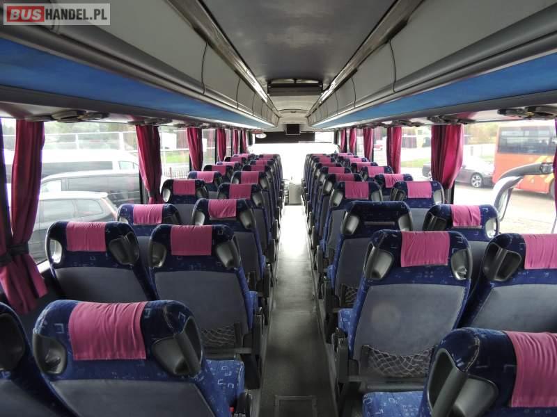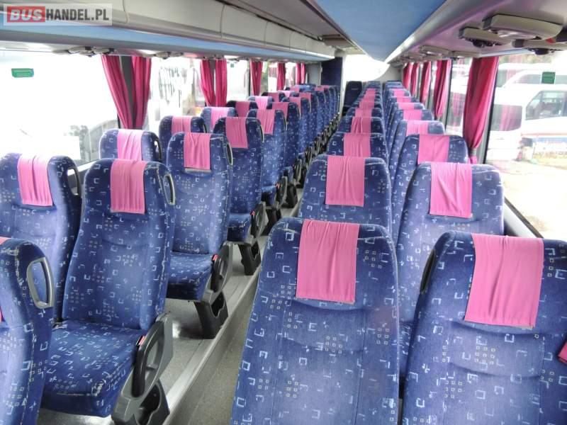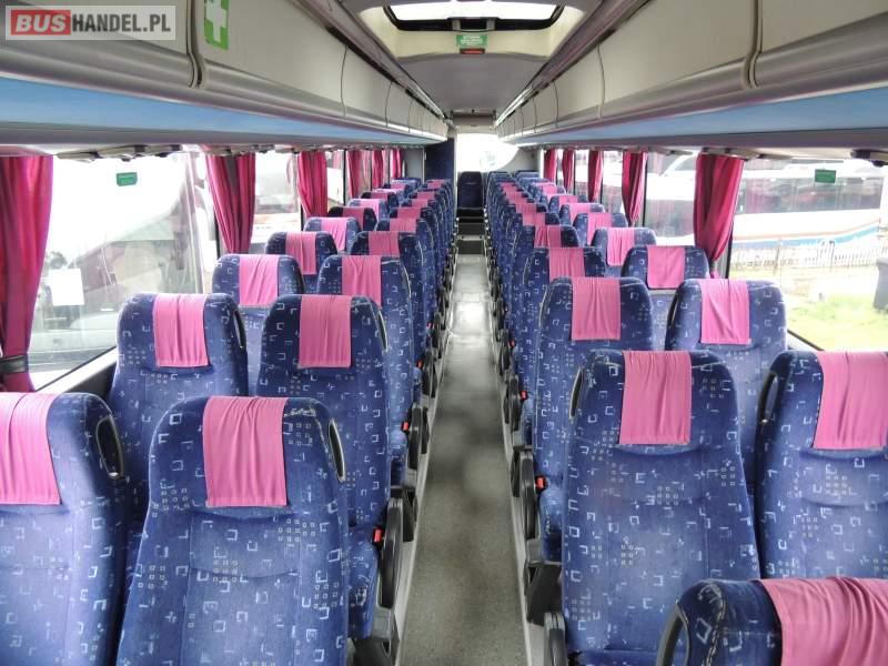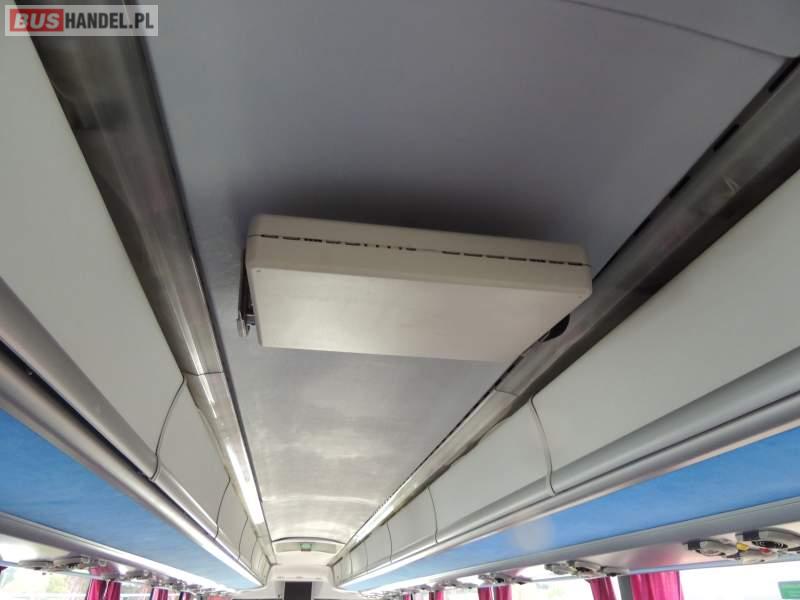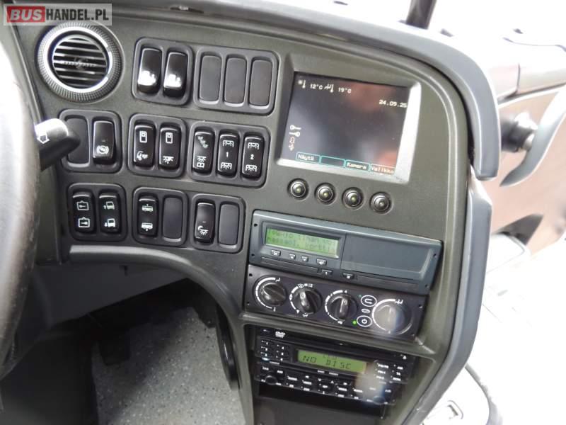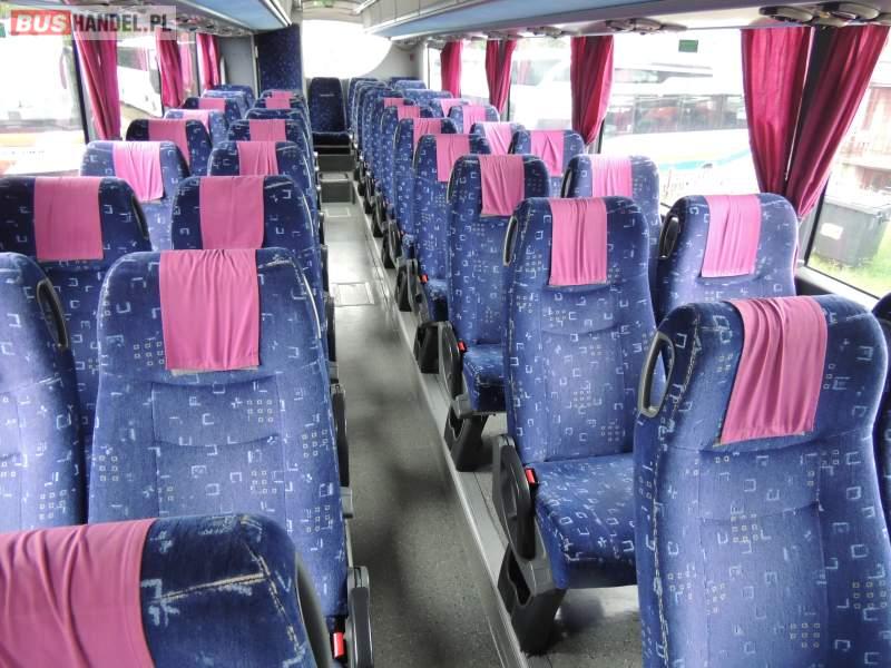 : video, WC, lodówka, oświetlenie indywidualne, nawiewy dyszowe, ABS, ASR, tempomat, retarder, CD, klimatyzacja, radio, regulacja wysokości nadwozia, centralny zamek, podwójne szyby boczne, wspomaganie kierownicy, fotele odchylane i rozsuwane, DVD, ogrzewanie stacjonarne