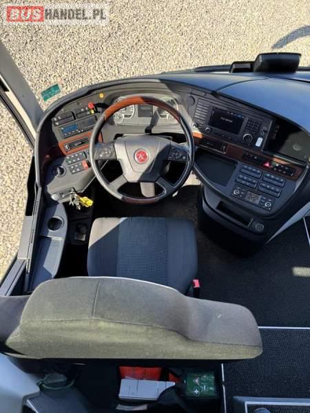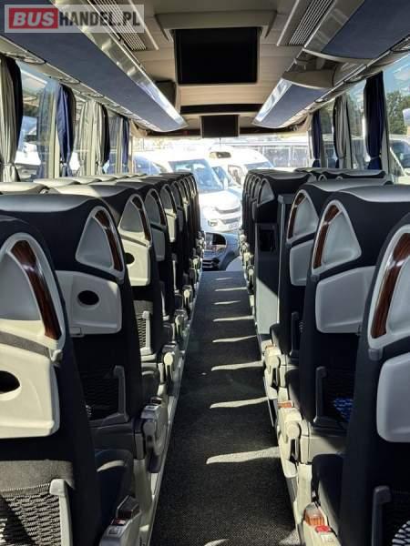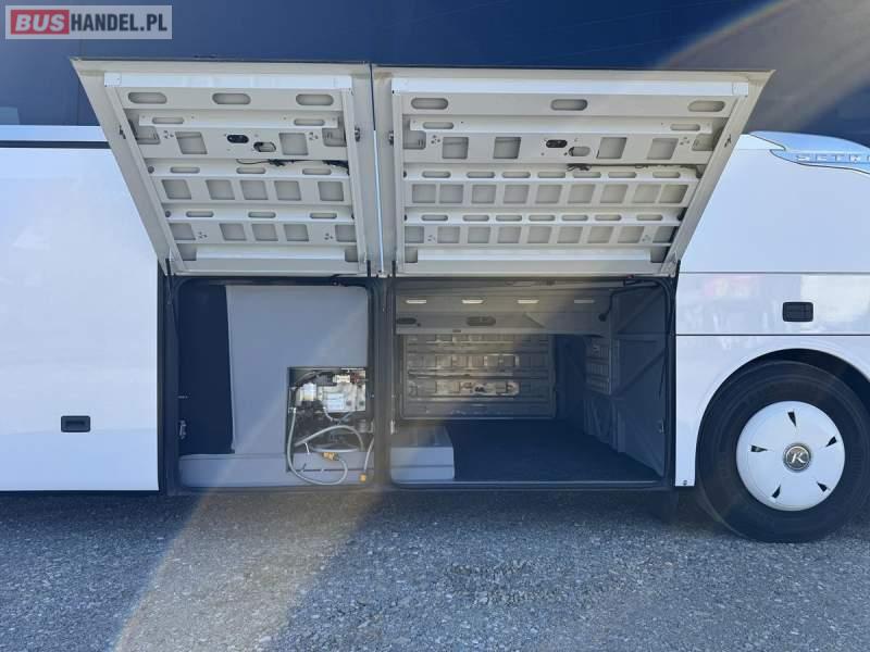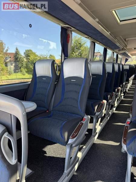: WC, lodówka, caffebar, kabina sypialna, oświetlenie indywidualne, nawiewy dyszowe, siateczki, ABS, ASR, tempomat, retarder, podnóżki, stoliczki, mikrofon, klimatyzacja, radio, sejf, regulacja wysokości nadwozia, centralny zamek, podwójne szyby boczne, wspomaganie kierownicy, elektryczne lusterka, fotele odchylane i rozsuwane, DVD, ogrzewanie stacjonarne, ESP
