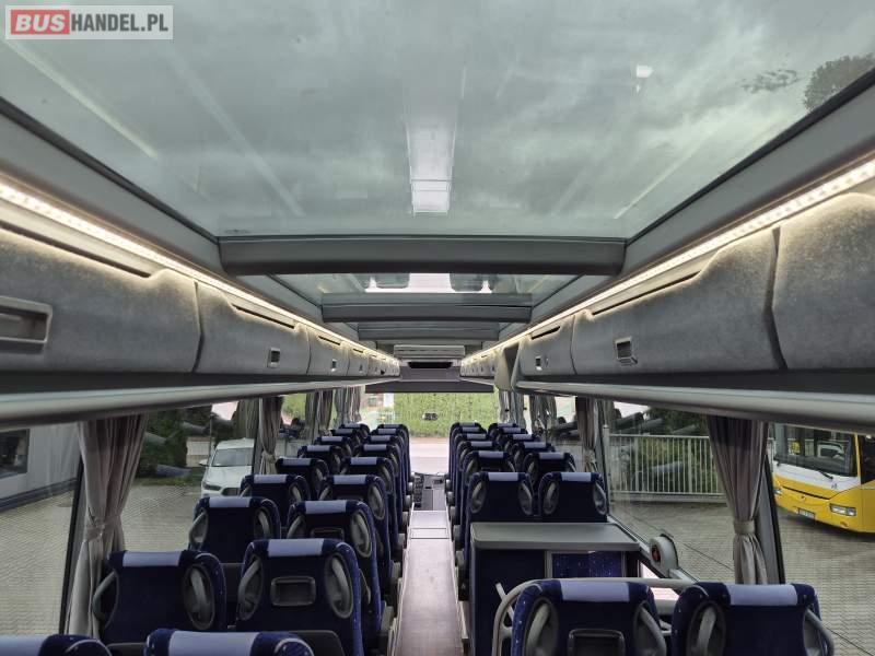 : klimatyzacja, video, WC, lodówka, kabina sypialna, oświetlenie indywidualne, fotele odchylane, podnóżki, stoliczki, siateczki, ABS, tempomat, retarder, CD, mikrofon, radio, regulacja wysokości nadwozia, centralny zamek, podwójne szyby boczne, wspomaganie kierownicy, elektryczne lusterka, ogrzewanie stacjonarne, DVD