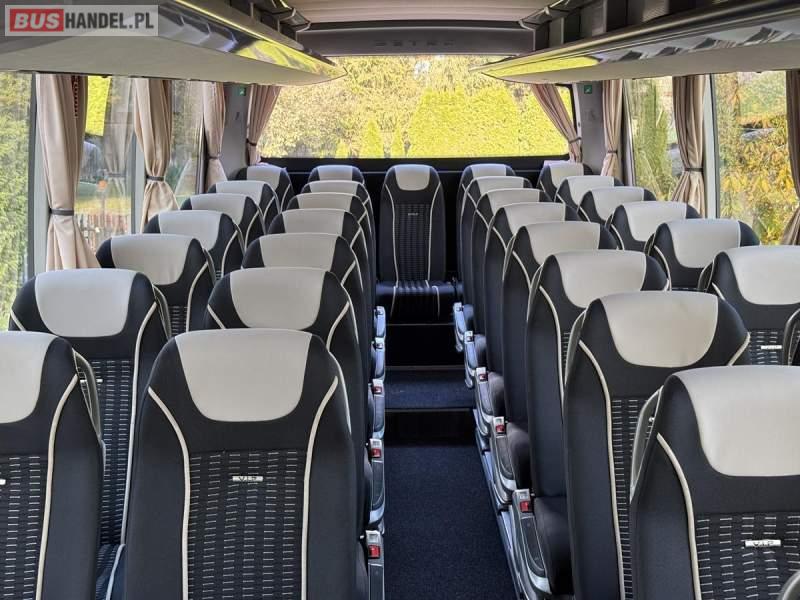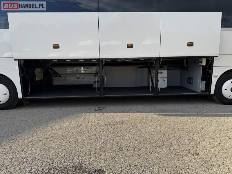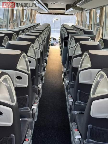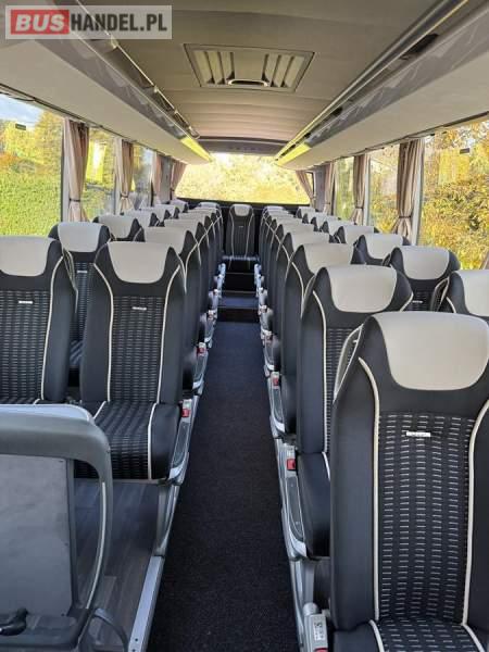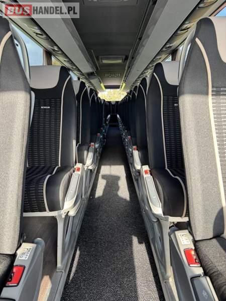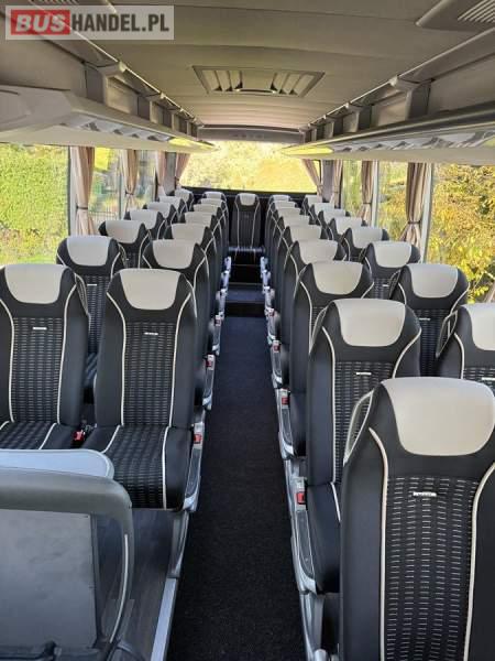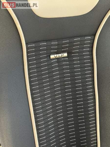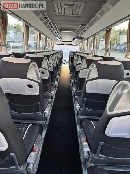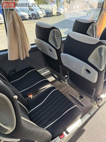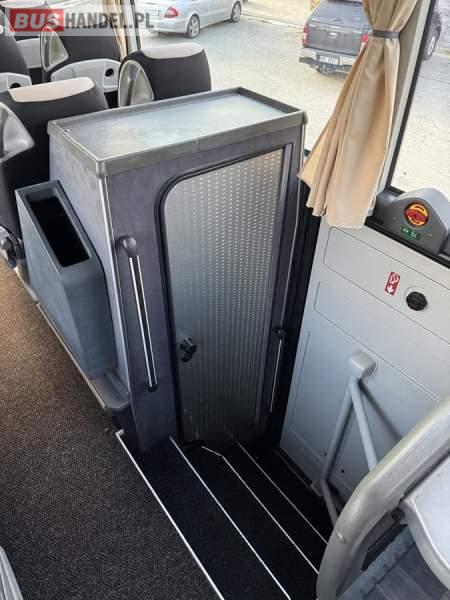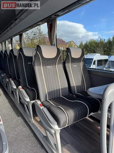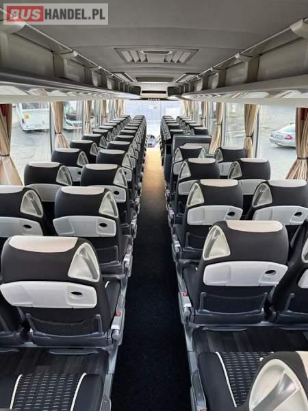: WC, lodówka, caffebar, kabina sypialna, oświetlenie indywidualne, nawiewy dyszowe, siateczki, ABS, ASR, tempomat, retarder, nawigacja, CD, podnóżki, stoliczki, mikrofon, klimatyzacja, radio, wyświetlacz matrix, regulacja wysokości nadwozia, centralny zamek, podwójne szyby boczne, wspomaganie kierownicy, elektryczne lusterka, fotele odchylane i rozsuwane, DVD, ogrzewanie stacjonarne, ESP