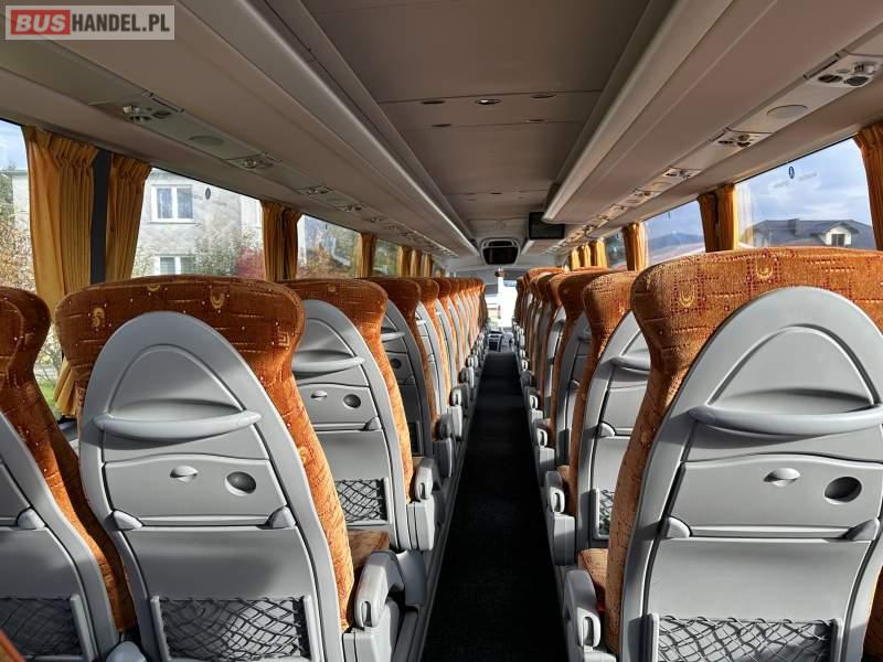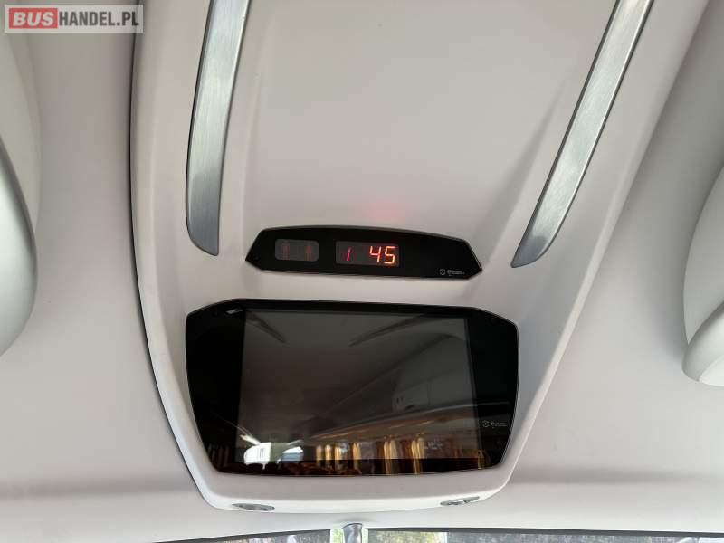 : video, WC, lodówka, kabina sypialna, fotele odchylane, oświetlenie indywidualne, nawiewy dyszowe, siateczki, ABS, ASR, tempomat, retarder, telefon, CD, podnóżki, stoliczki, mikrofon, klimatyzacja, radio, regulacja wysokości nadwozia, centralny zamek, podwójne szyby boczne, wspomaganie kierownicy, elektryczne lusterka, DVD, ogrzewanie stacjonarne, ESP