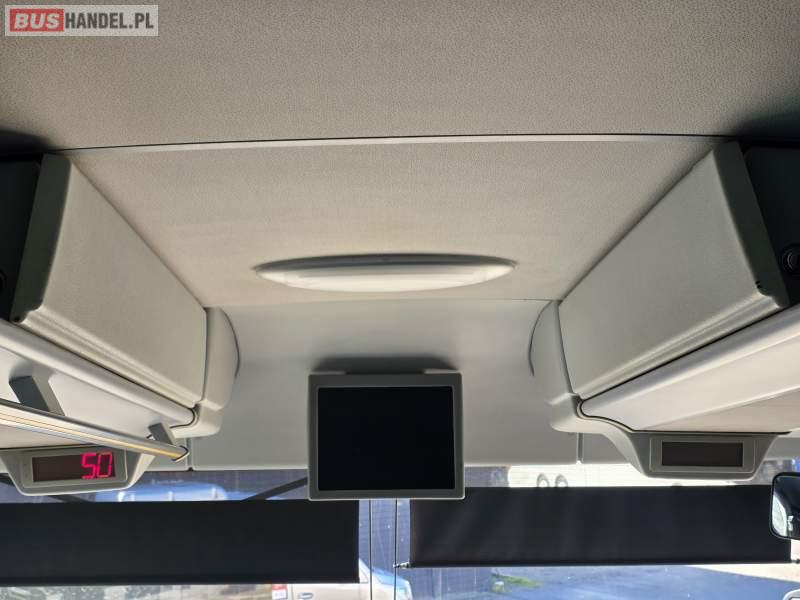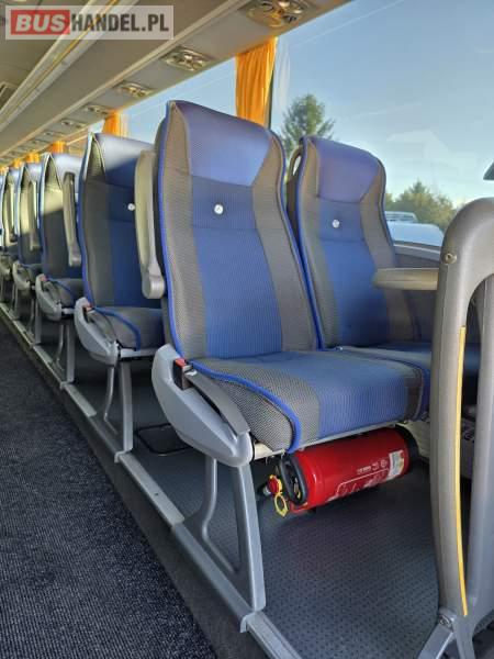 : WC, lodówka, caffebar, oświetlenie indywidualne, nawiewy dyszowe, siateczki, ABS, ASR, tempomat, retarder, podnóżki, stoliczki, mikrofon, klimatyzacja, radio, sejf, regulacja wysokości nadwozia, centralny zamek, podwójne szyby boczne, wspomaganie kierownicy, elektryczne lusterka, fotele odchylane i rozsuwane, DVD, ogrzewanie stacjonarne, ESP