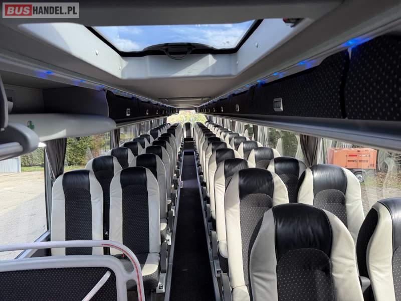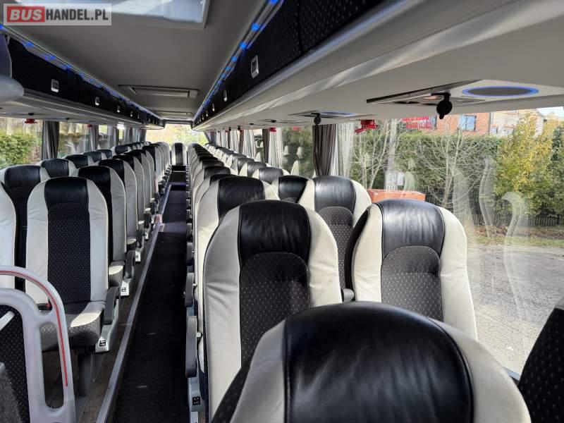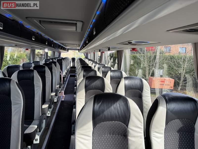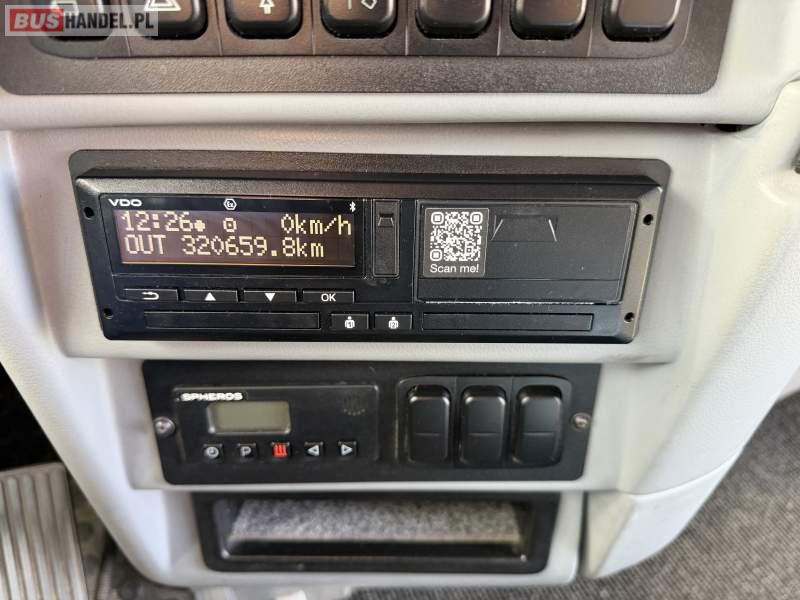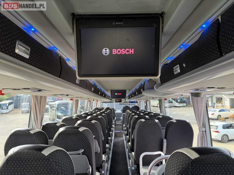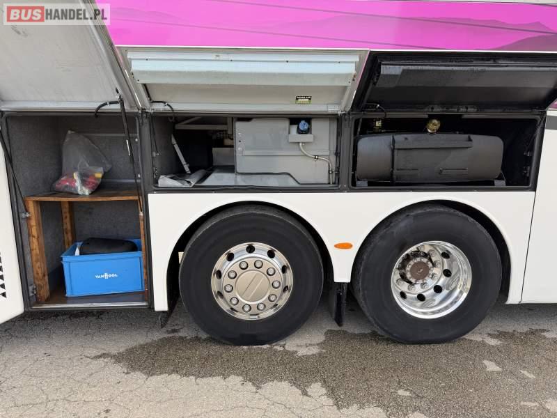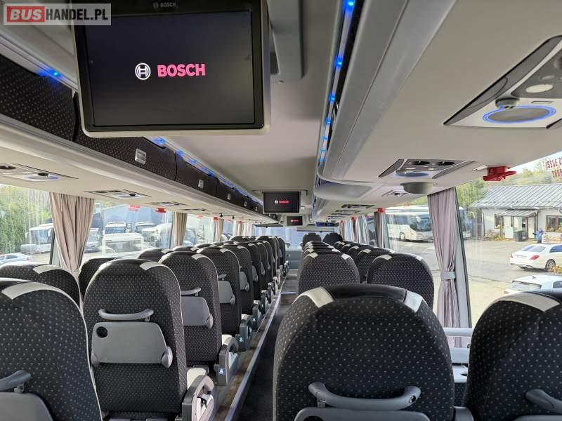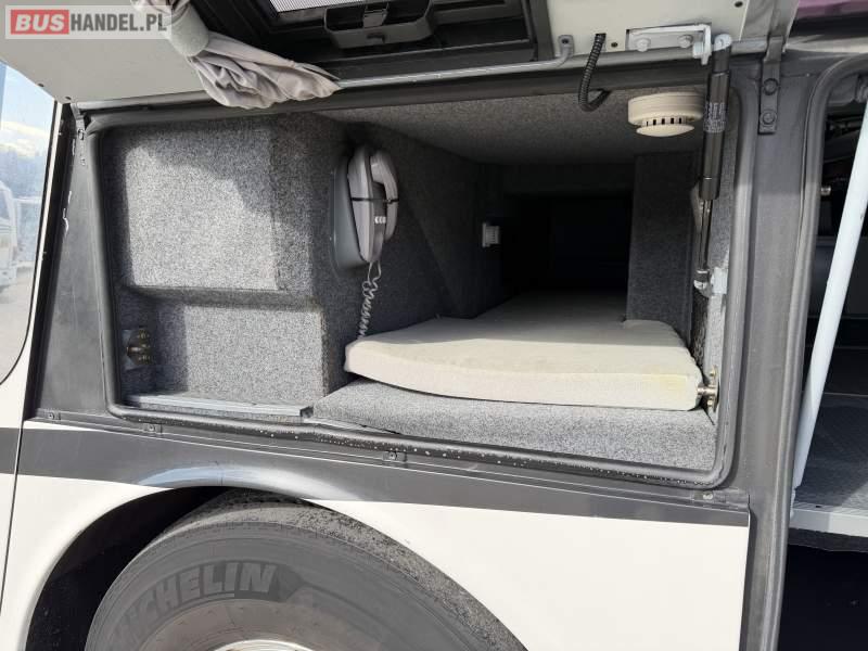 : WC, lodówka, caffebar, kabina sypialna, oświetlenie indywidualne, nawiewy dyszowe, siateczki, ABS, ASR, tempomat, retarder, telefon, podnóżki, stoliczki, mikrofon, klimatyzacja, radio, sejf, regulacja wysokości nadwozia, centralny zamek, podwójne szyby boczne, wspomaganie kierownicy, elektryczne lusterka, aluminiowe felgi, fotele odchylane i rozsuwane, DVD, ogrzewanie stacjonarne, hak holowniczy, ESP