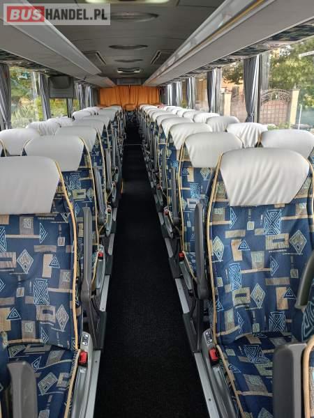 : video, WC, lodówka, caffebar, kabina sypialna, oświetlenie indywidualne, nawiewy dyszowe, ABS, ASR, tempomat, retarder, CD, podnóżki, mikrofon, klimatyzacja, radio, regulacja wysokości nadwozia, centralny zamek, podwójne szyby boczne, wspomaganie kierownicy, elektryczne lusterka, fotele odchylane i rozsuwane, DVD, ogrzewanie stacjonarne, hak holowniczy, ESP