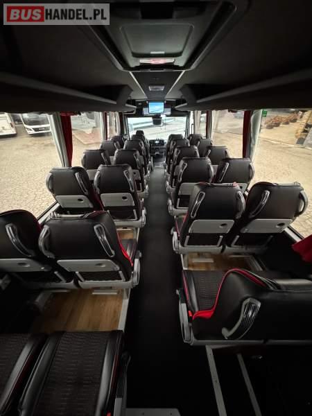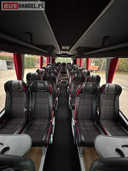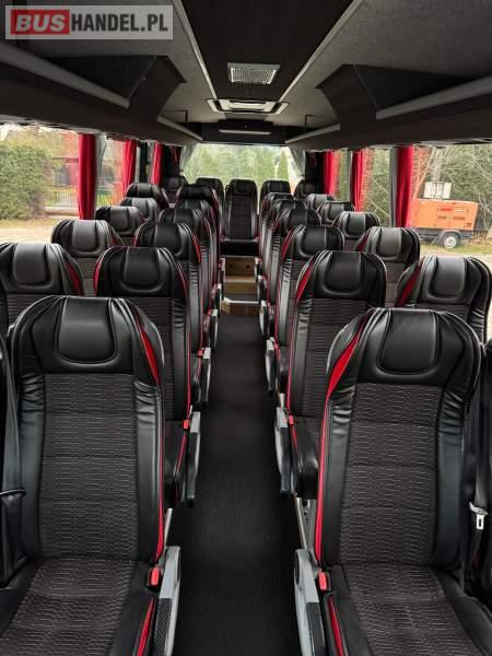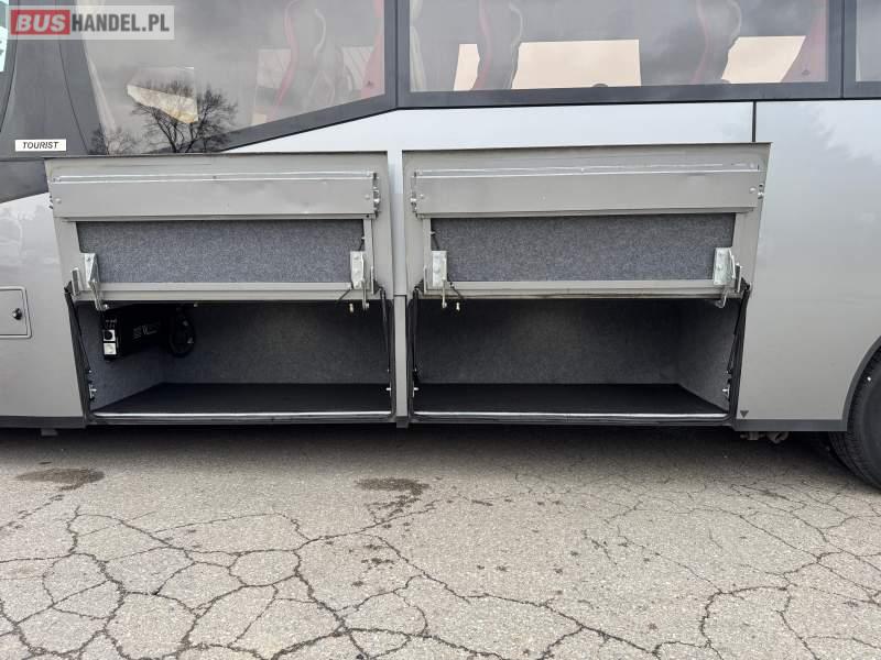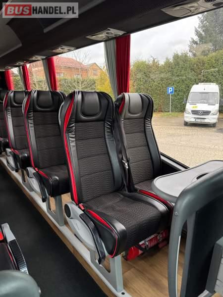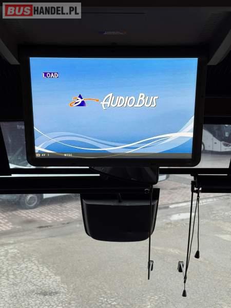 : oświetlenie indywidualne, nawiewy dyszowe, siateczki, ABS, ASR, tempomat, retarder, podnóżki, stoliczki, mikrofon, klimatyzacja, radio, centralny zamek, podwójne szyby boczne, wspomaganie kierownicy, elektryczne lusterka, fotele odchylane i rozsuwane, DVD, ogrzewanie stacjonarne