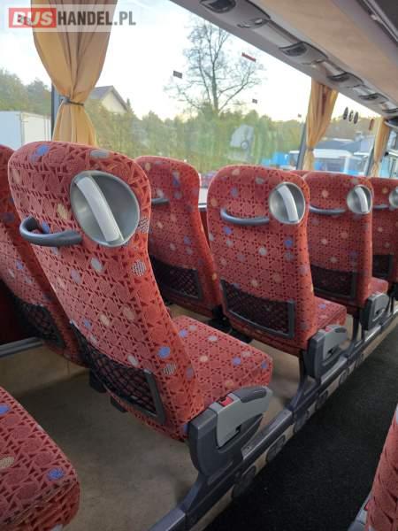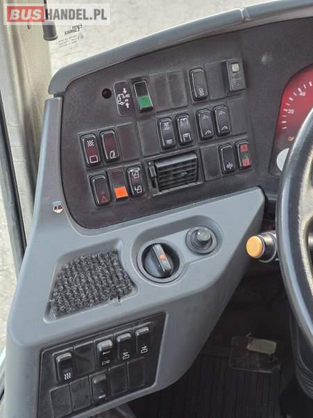 : lodówka, fotele odchylane, oświetlenie indywidualne, nawiewy dyszowe, siateczki, ABS, ASR, tempomat, retarder, podnóżki, stoliczki, mikrofon, klimatyzacja, radio, regulacja wysokości nadwozia, centralny zamek, podwójne szyby boczne, wspomaganie kierownicy, elektryczne lusterka, ogrzewanie stacjonarne