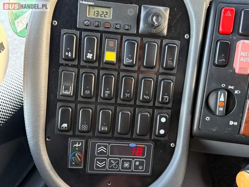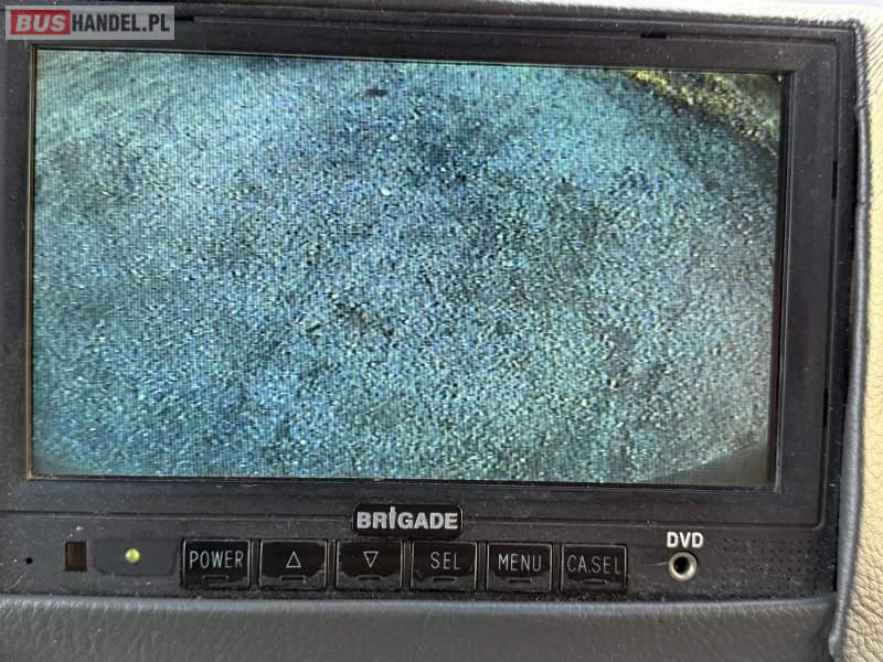 : video, fotele odchylane, oświetlenie indywidualne, nawiewy dyszowe, ABS, ASR, tempomat, retarder, CD, podnóżki, mikrofon, klimatyzacja, radio, centralny zamek, podwójne szyby boczne, wspomaganie kierownicy, elektryczne lusterka, DVD, ogrzewanie stacjonarne