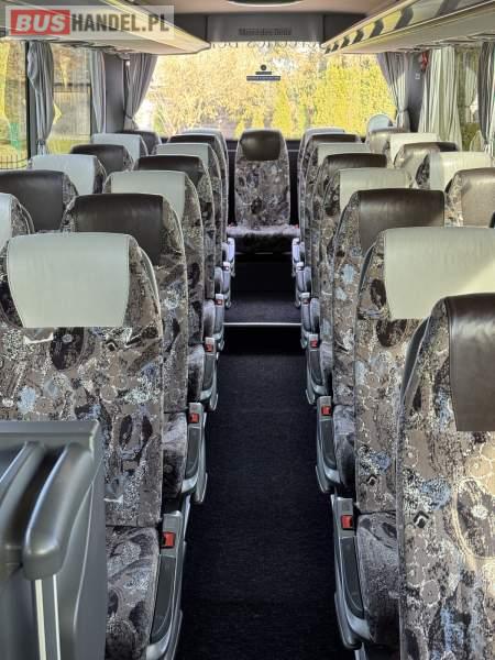 : WC, lodówka, caffebar, oświetlenie indywidualne, nawiewy dyszowe, siateczki, ABS, ASR, tempomat, retarder, podnóżki, stoliczki, mikrofon, klimatyzacja, radio, sejf, regulacja wysokości nadwozia, centralny zamek, podwójne szyby boczne, wspomaganie kierownicy, elektryczne lusterka, fotele odchylane i rozsuwane, DVD, ogrzewanie stacjonarne, ESP