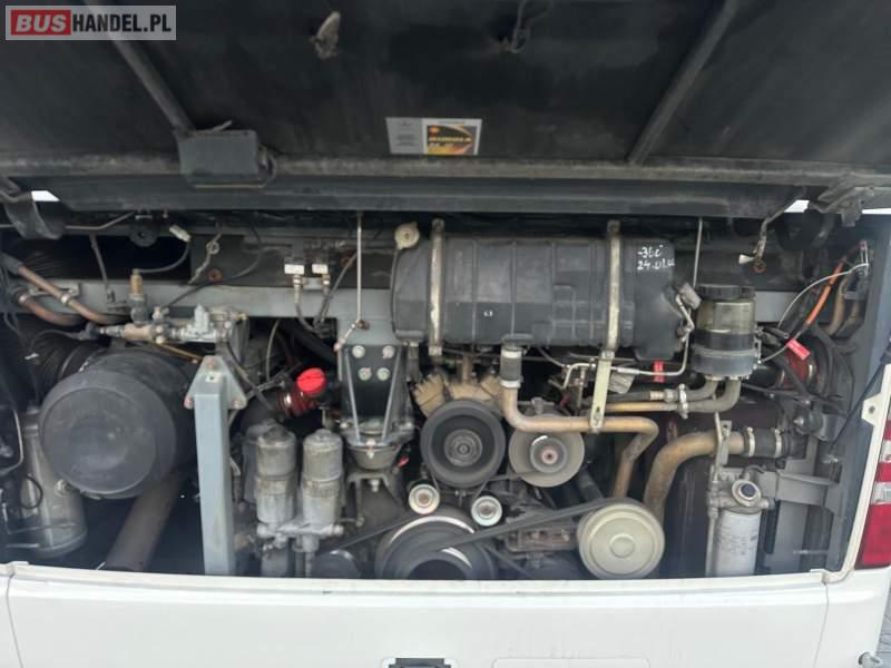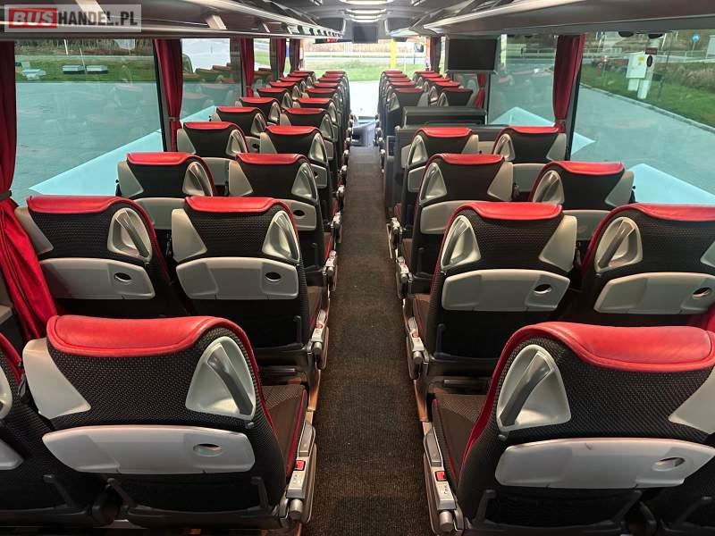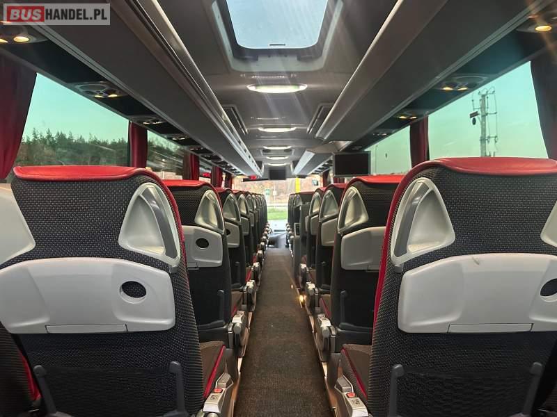 : video, WC, lodówka, caffebar, kabina sypialna, fotele odchylane, oświetlenie indywidualne, nawiewy dyszowe, siateczki, ABS, ASR, tempomat, retarder, telefon, nawigacja, CD, podnóżki, stoliczki, mikrofon, klimatyzacja, radio, wyświetlacz matrix, sejf, regulacja wysokości nadwozia, centralny zamek, podwójne szyby boczne, wspomaganie kierownicy, elektryczne lusterka, fotele odchylane i rozsuwane, DVD, ogrzewanie stacjonarne, hak holowniczy, ESP