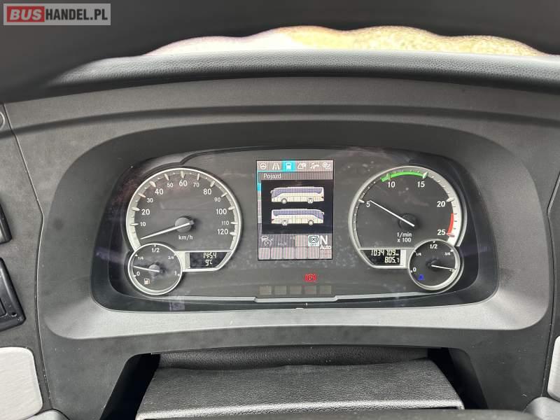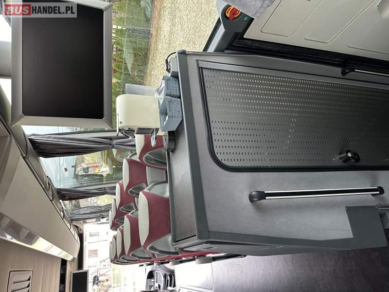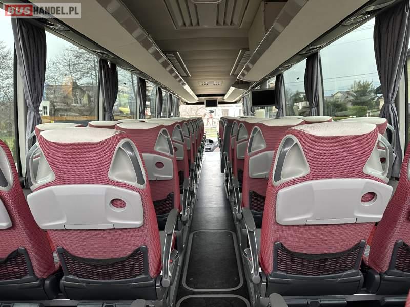 : video, WC, lodówka, caffebar, oświetlenie indywidualne, nawiewy dyszowe, siateczki, ABS, ASR, tempomat, retarder, nawigacja, CD, podnóżki, stoliczki, mikrofon, klimatyzacja, regulacja wysokości nadwozia, centralny zamek, podwójne szyby boczne, wspomaganie kierownicy, elektryczne lusterka, fotele odchylane i rozsuwane, DVD, ogrzewanie stacjonarne, ESP