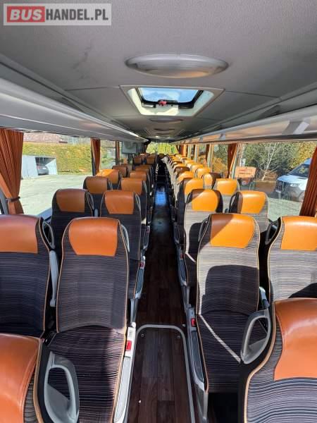 : WC, lodówka, kabina sypialna, oświetlenie indywidualne, nawiewy dyszowe, siateczki, ABS, ASR, tempomat, retarder, podnóżki, stoliczki, mikrofon, klimatyzacja, radio, sejf, regulacja wysokości nadwozia, centralny zamek, podwójne szyby boczne, wspomaganie kierownicy, elektryczne lusterka, fotele odchylane i rozsuwane, DVD, ogrzewanie stacjonarne, ESP