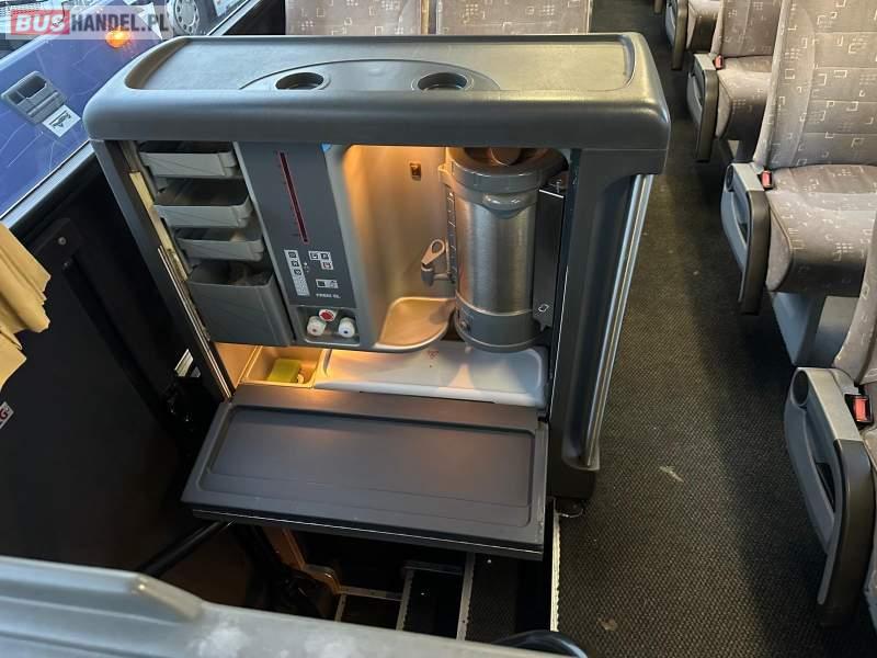 : klimatyzacja, WC, lodówka, caffebar, kabina sypialna, oświetlenie indywidualne, nawiewy dyszowe, fotele odchylane, podnóżki, stoliczki, siateczki, ABS, ASR, tempomat, retarder, telefon, CD, mikrofon, radio, fotele odchylane i rozsuwane, wyświetlacz matrix, sejf, regulacja wysokości nadwozia, centralny zamek, podwójne szyby boczne, wspomaganie kierownicy, elektryczne lusterka, ogrzewanie stacjonarne, DVD, hak holowniczy, ESP