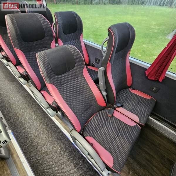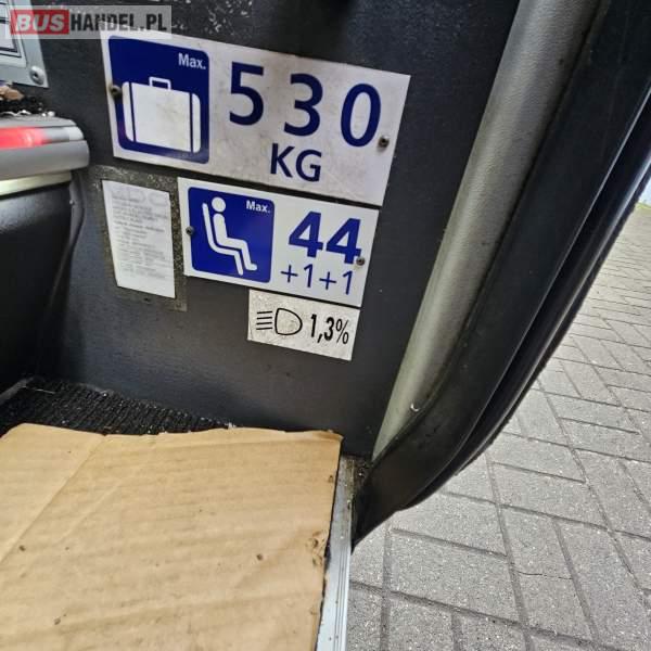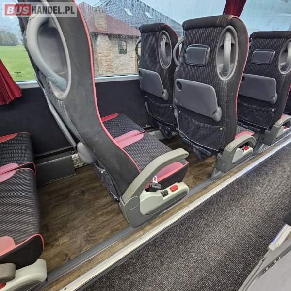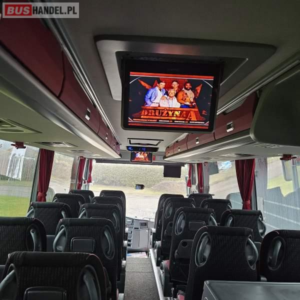 : klimatyzacja, video, WC, lodówka, oświetlenie indywidualne, nawiewy dyszowe, fotele odchylane, podnóżki, stoliczki, siateczki, ABS, ASR, tempomat, retarder, CD, mikrofon, radio, regulacja wysokości nadwozia, centralny zamek, podwójne szyby boczne, wspomaganie kierownicy, elektryczne lusterka, ogrzewanie stacjonarne, DVD, hak holowniczy, ESP