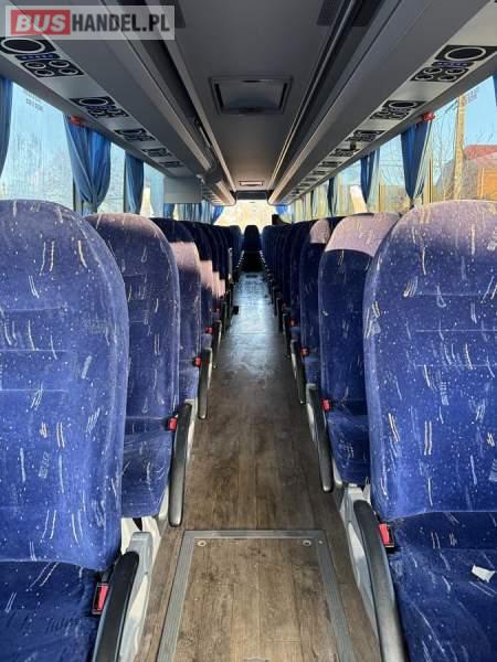 : klimatyzacja, WC, lodówka, caffebar, kabina sypialna, oświetlenie indywidualne, nawiewy dyszowe, fotele odchylane, podnóżki, ABS, ASR, tempomat, retarder, mikrofon, radio, regulacja wysokości nadwozia, centralny zamek, podwójne szyby boczne, wspomaganie kierownicy, elektryczne lusterka, ogrzewanie stacjonarne, DVD, ESP