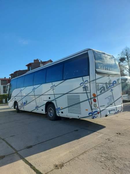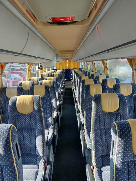 : klimatyzacja, video, WC, lodówka, kabina sypialna, oświetlenie indywidualne, nawiewy dyszowe, fotele odchylane, podnóżki, stoliczki, siateczki, ABS, ASR, tempomat, retarder, CD, mikrofon, radio, sejf, regulacja wysokości nadwozia, centralny zamek, podwójne szyby boczne, wspomaganie kierownicy, elektryczne lusterka, ogrzewanie stacjonarne, DVD, ESP