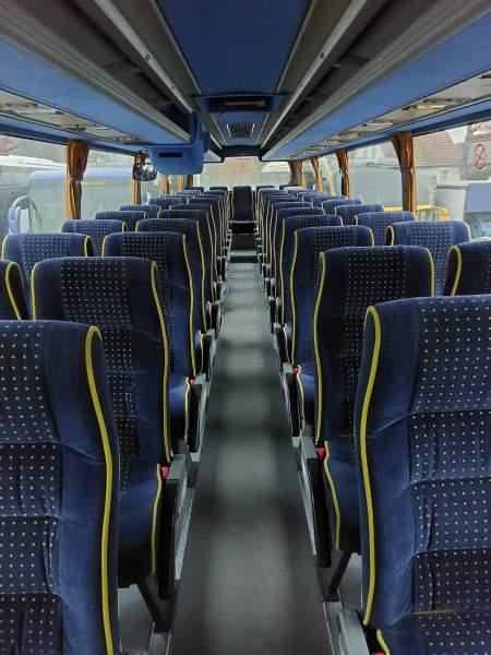 : klimatyzacja, video, lodówka, oświetlenie indywidualne, nawiewy dyszowe, fotele odchylane, stoliczki, siateczki, ABS, ASR, tempomat, retarder, CD, mikrofon, radio, fotele odchylane i rozsuwane, sejf, regulacja wysokości nadwozia, centralny zamek, podwójne szyby boczne, wspomaganie kierownicy, elektryczne lusterka, ogrzewanie stacjonarne, DVD, ESP