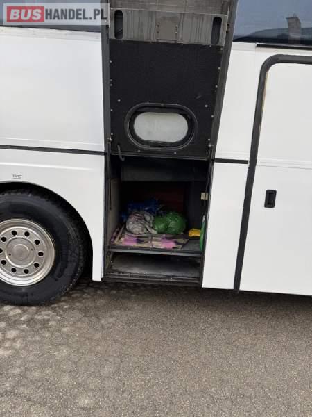 : WC, kabina sypialna, fotele odchylane, oświetlenie indywidualne, nawiewy dyszowe, siateczki, ABS, ASR, retarder, mikrofon, klimatyzacja, radio, centralny zamek, podwójne szyby boczne, wspomaganie kierownicy, elektryczne lusterka, ogrzewanie stacjonarne