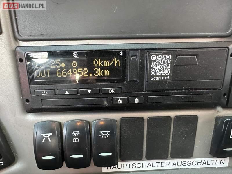 : klimatyzacja, video, WC, lodówka, caffebar, oświetlenie indywidualne, nawiewy dyszowe, fotele odchylane, podnóżki, stoliczki, siateczki, ABS, ASR, tempomat, retarder, telefon, nawigacja, CD, mikrofon, radio, fotele odchylane i rozsuwane, wyświetlacz matrix, sejf, regulacja wysokości nadwozia, centralny zamek, podwójne szyby boczne, wspomaganie kierownicy, elektryczne lusterka, ogrzewanie stacjonarne, DVD, hak holowniczy, ESP
