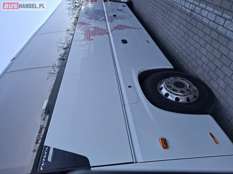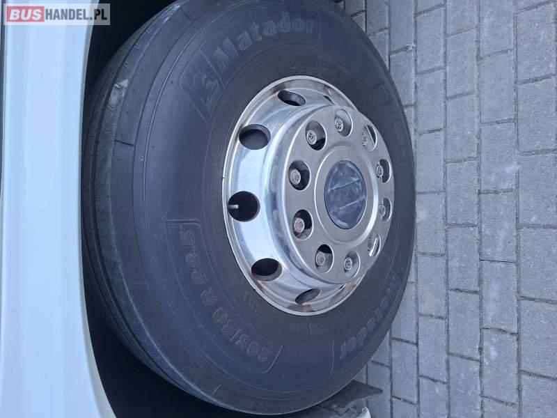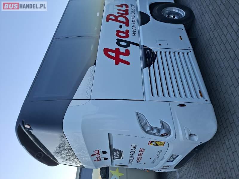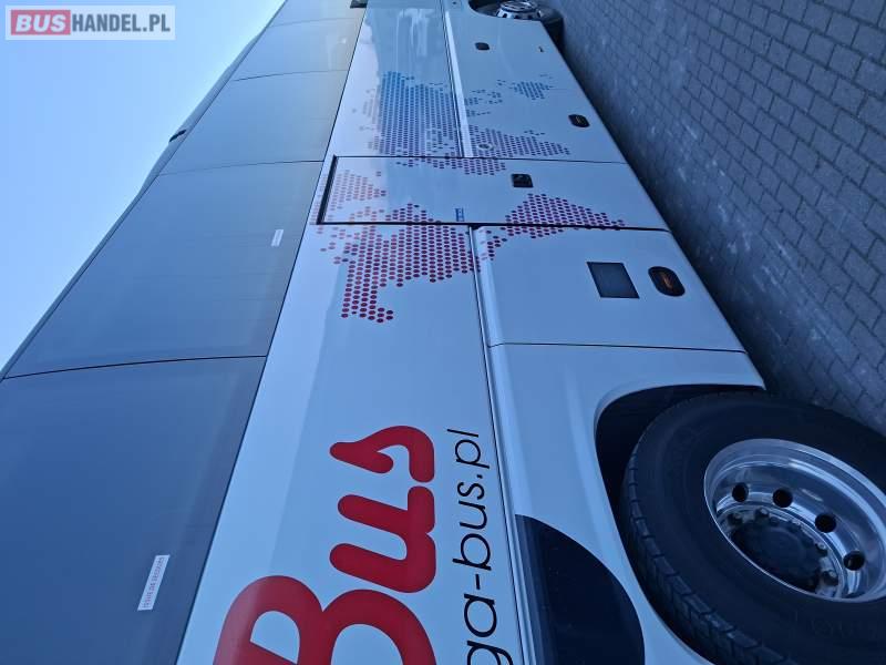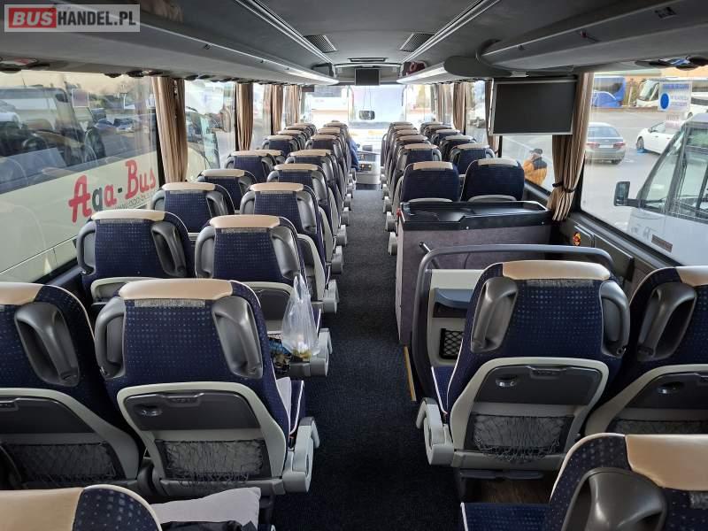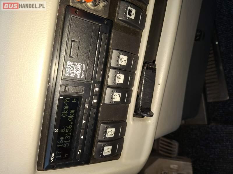 : WC, lodówka, kabina sypialna, fotele odchylane, oświetlenie indywidualne, nawiewy dyszowe, siateczki, ABS, ASR, tempomat, retarder, podnóżki, stoliczki, mikrofon, klimatyzacja, radio, sejf, regulacja wysokości nadwozia, podwójne szyby boczne, wspomaganie kierownicy, elektryczne lusterka, aluminiowe felgi, DVD, ogrzewanie stacjonarne, ESP