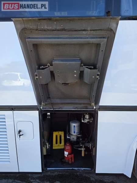 : fotele odchylane, oświetlenie indywidualne, nawiewy dyszowe, ABS, ASR, retarder, klimatyzacja, radio, centralny zamek, podwójne szyby boczne, elektryczne lusterka, ogrzewanie stacjonarne
