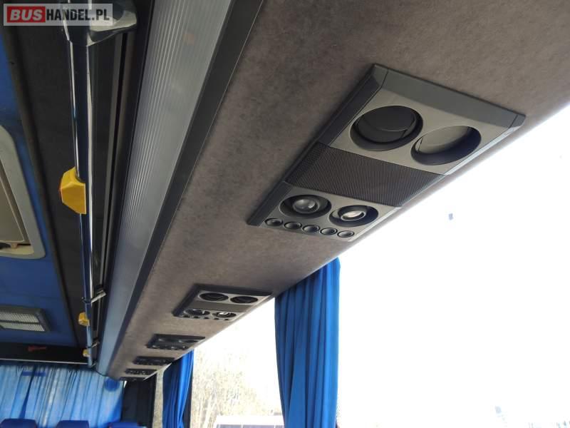 : lodówka, oświetlenie indywidualne, nawiewy dyszowe, ABS, ASR, tempomat, retarder, CD, klimatyzacja, centralny zamek, podwójne szyby boczne, wspomaganie kierownicy, elektryczne lusterka, fotele odchylane i rozsuwane, DVD, ogrzewanie stacjonarne, hak holowniczy, ESP