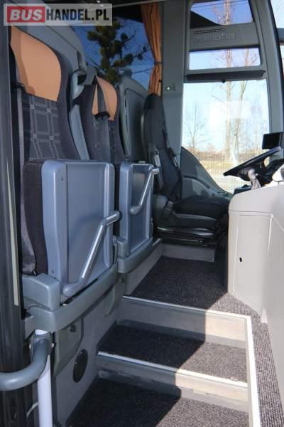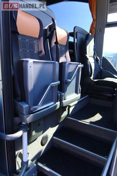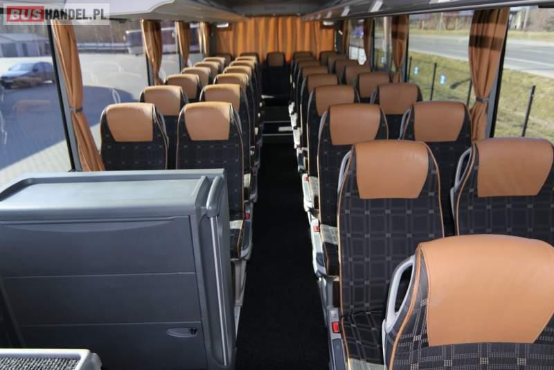 : klimatyzacja, video, WC, lodówka, caffebar, oświetlenie indywidualne, nawiewy dyszowe, fotele odchylane, podnóżki, stoliczki, siateczki, ABS, ASR, tempomat, retarder, telefon, nawigacja, CD, mikrofon, radio, fotele odchylane i rozsuwane, sejf, regulacja wysokości nadwozia, centralny zamek, podwójne szyby boczne, wspomaganie kierownicy, elektryczne lusterka, ogrzewanie stacjonarne, DVD, hak holowniczy, ESP