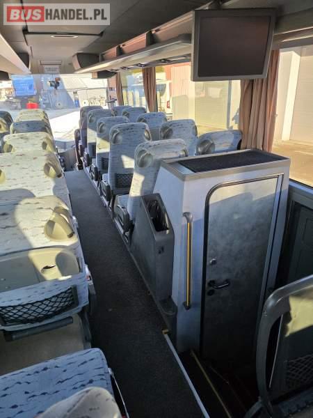 : WC, lodówka, oświetlenie indywidualne, nawiewy dyszowe, siateczki, ABS, ASR, tempomat, retarder, podnóżki, stoliczki, mikrofon, klimatyzacja, radio, sejf, regulacja wysokości nadwozia, centralny zamek, podwójne szyby boczne, wspomaganie kierownicy, elektryczne lusterka, fotele odchylane i rozsuwane, DVD, ogrzewanie stacjonarne, ESP